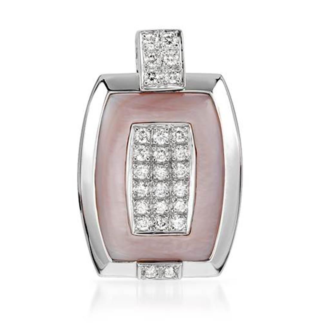 One 18k White Gold 0.57CTW Mother Of Pearl and Diamond Pendant, (SI1-SI2/Pink/G-H) - Product Specification: Stone: Diamond Stone 2: Mother Of Pearl Stone 2 Color: Pink Stone 2 Custom: 26 Stone 2 Shape: Round Stone 2 Type: Fancy Stone 3 Custom: Women Stone 4 Custom: SI1-SI2 / G-H Stone Clarity: SI1-SI2 Stone Color: G-H Stone type: Round Stone Weight: 0.57 Weight: 1 Width: 19.0mm