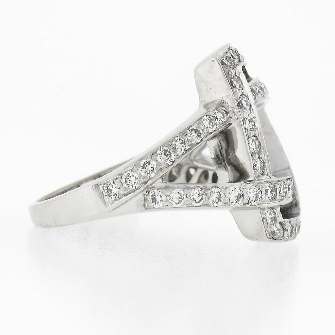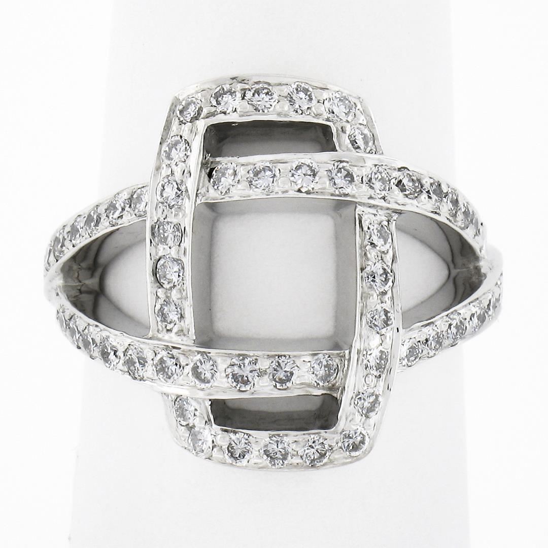 A solid 18k white gold interlocking ring, with 60 round brilliant cut natural diamonds (G/H - VS1/VS2 ; 0.78ctw). The ring is size 6.0, weighs a total of 6.63 grams, and measures 16.70mm wide.