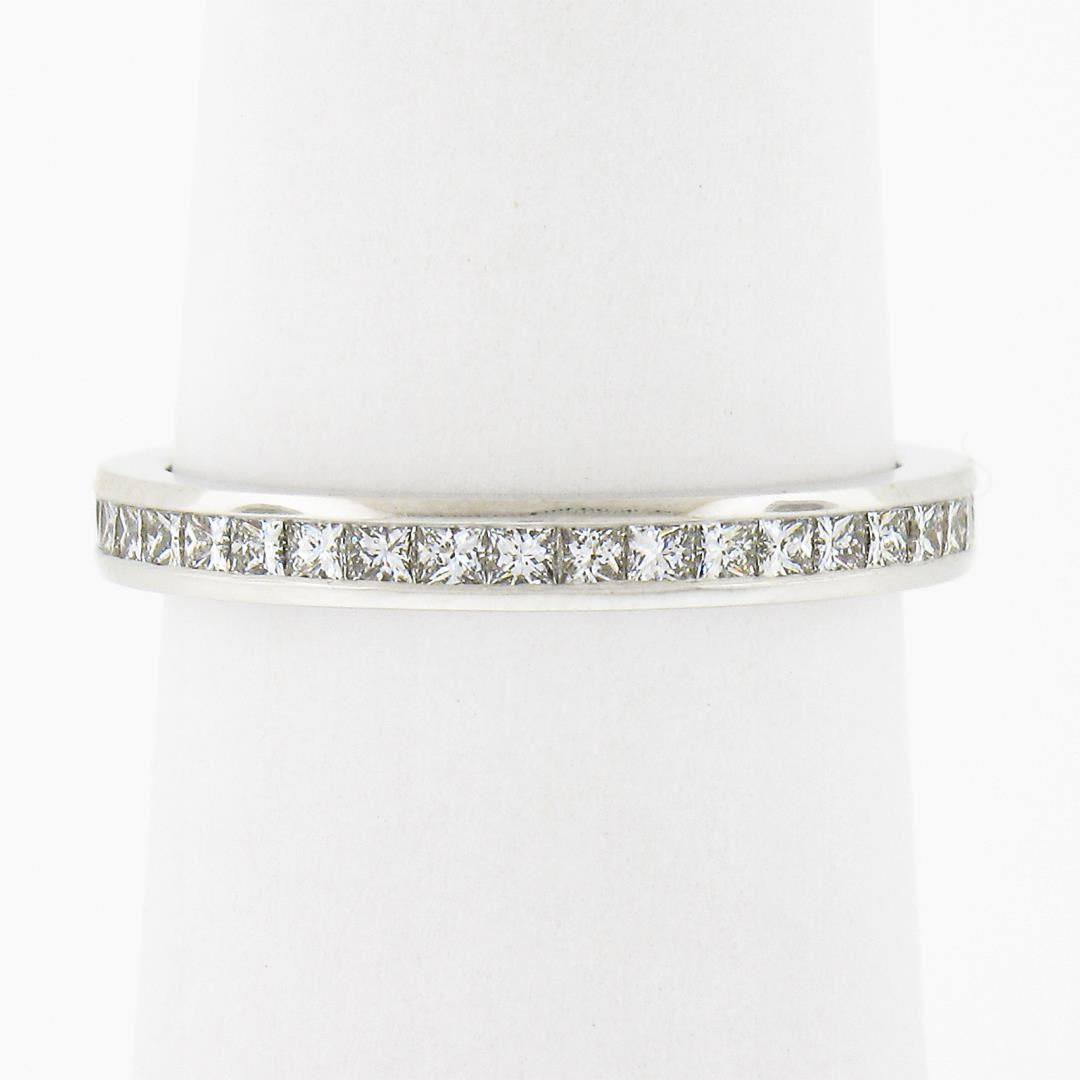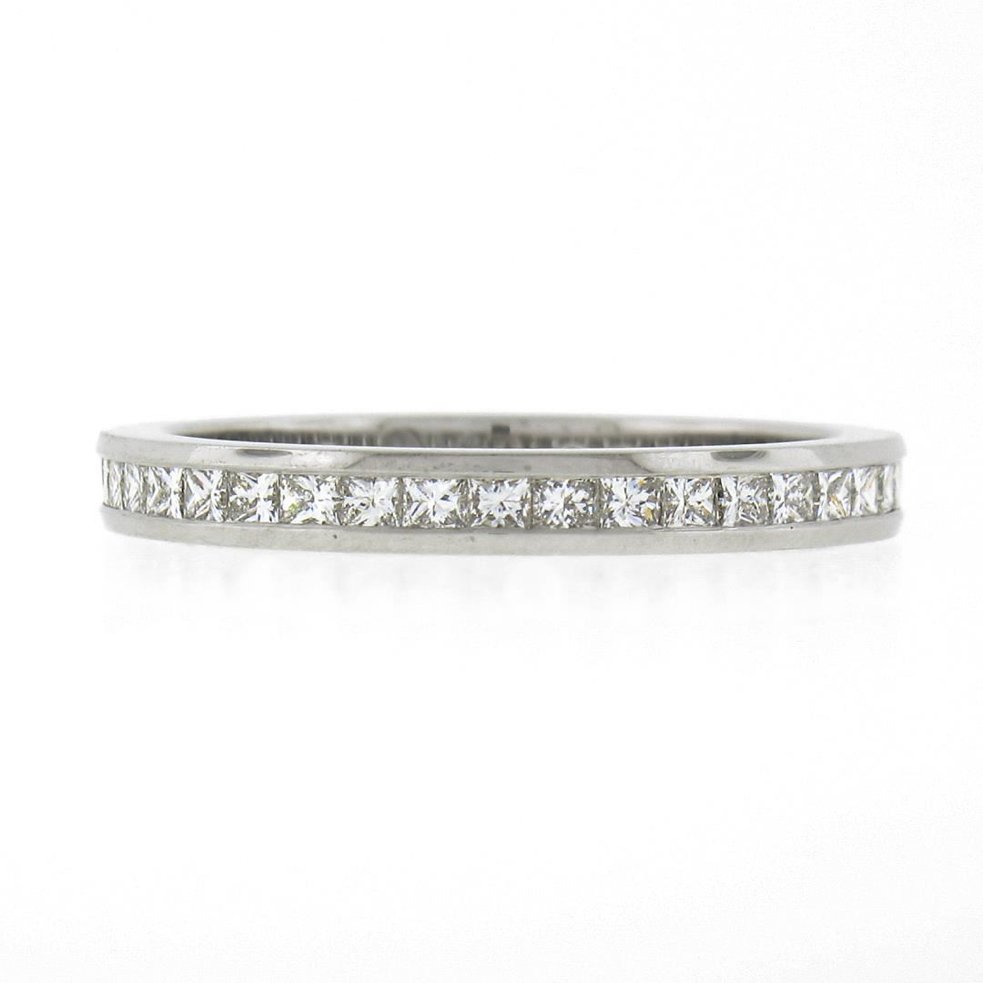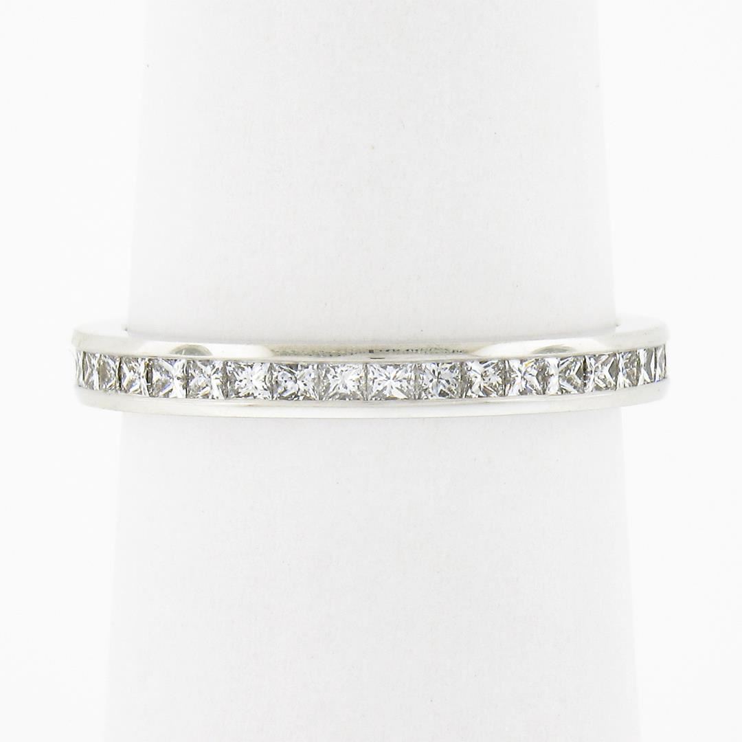 A solid 18k white gold band ring, with 39 princess cut natural diamonds (F/G - VVS2/VS1 ; 0.80ctw). The ring is size 6.0, weighs a total of 2.20 grams, and measures 2.5mm wide.