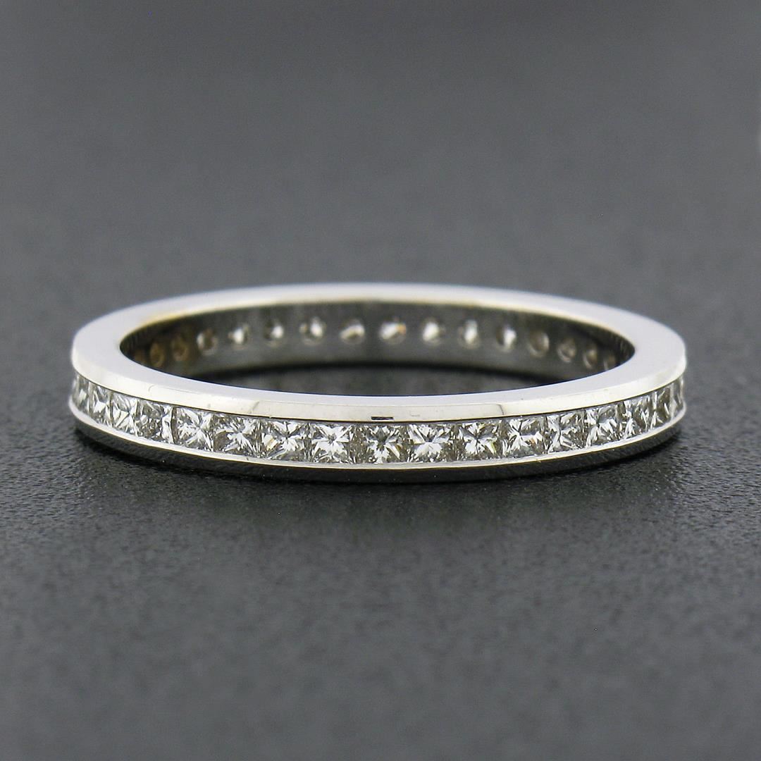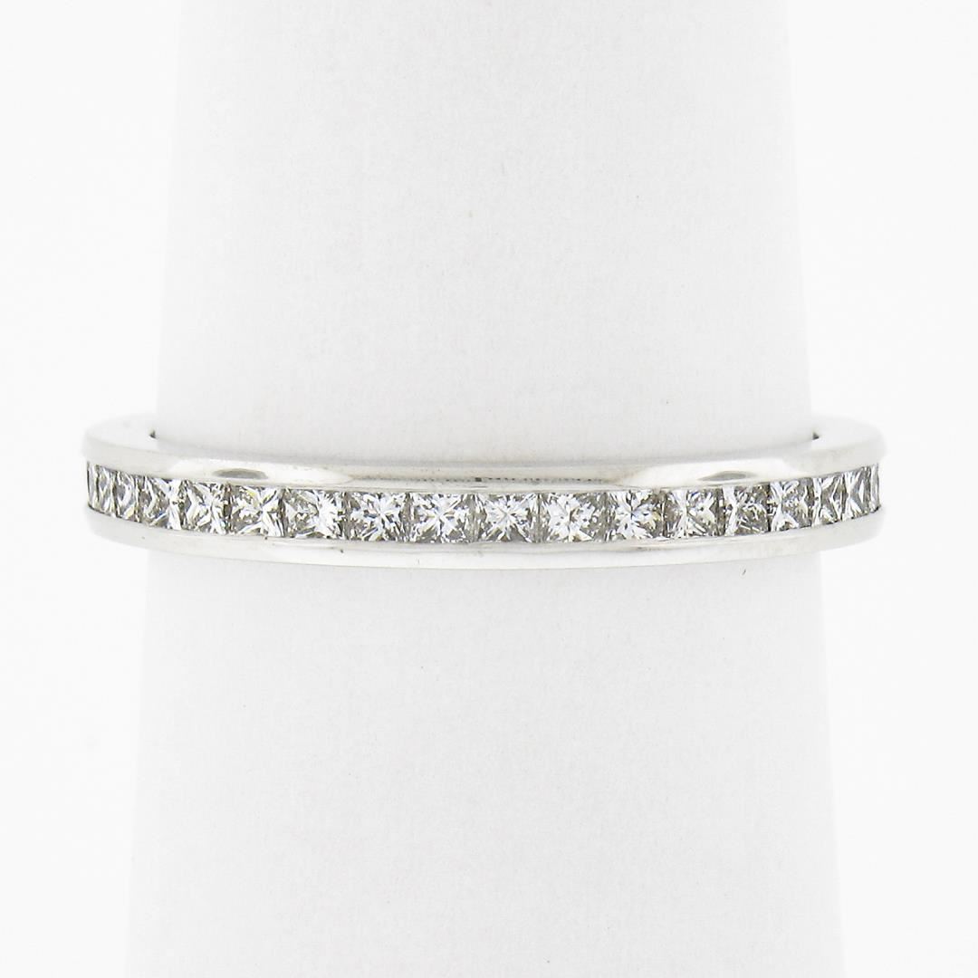 A solid 18k white gold band ring, with 39 princess cut natural diamonds (F/G - VVS2/VS1 ; 0.80ctw). The ring is size 6.0, weighs a total of 2.20 grams, and measures 2.5mm wide.