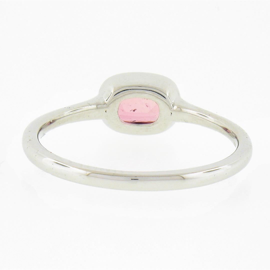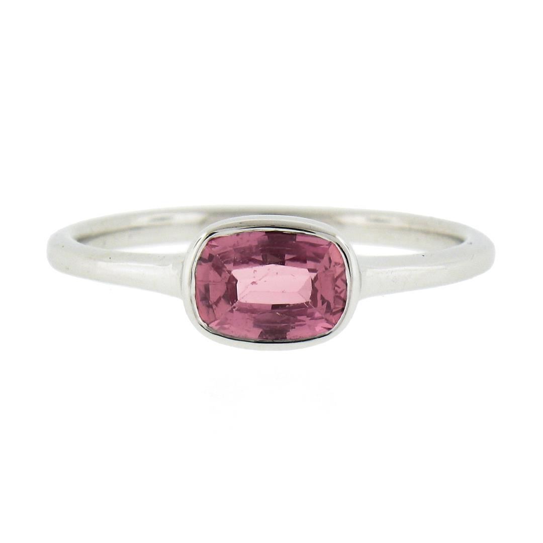 A new solid 18k white gold solitaire ring, with 1 GIA graded cushion cut natural sapphire (0.81ct). The ring is size 6.5, weighs a total of 2.37 grams, and measures 5.7mm wide. Comes with all original relevant certifications.