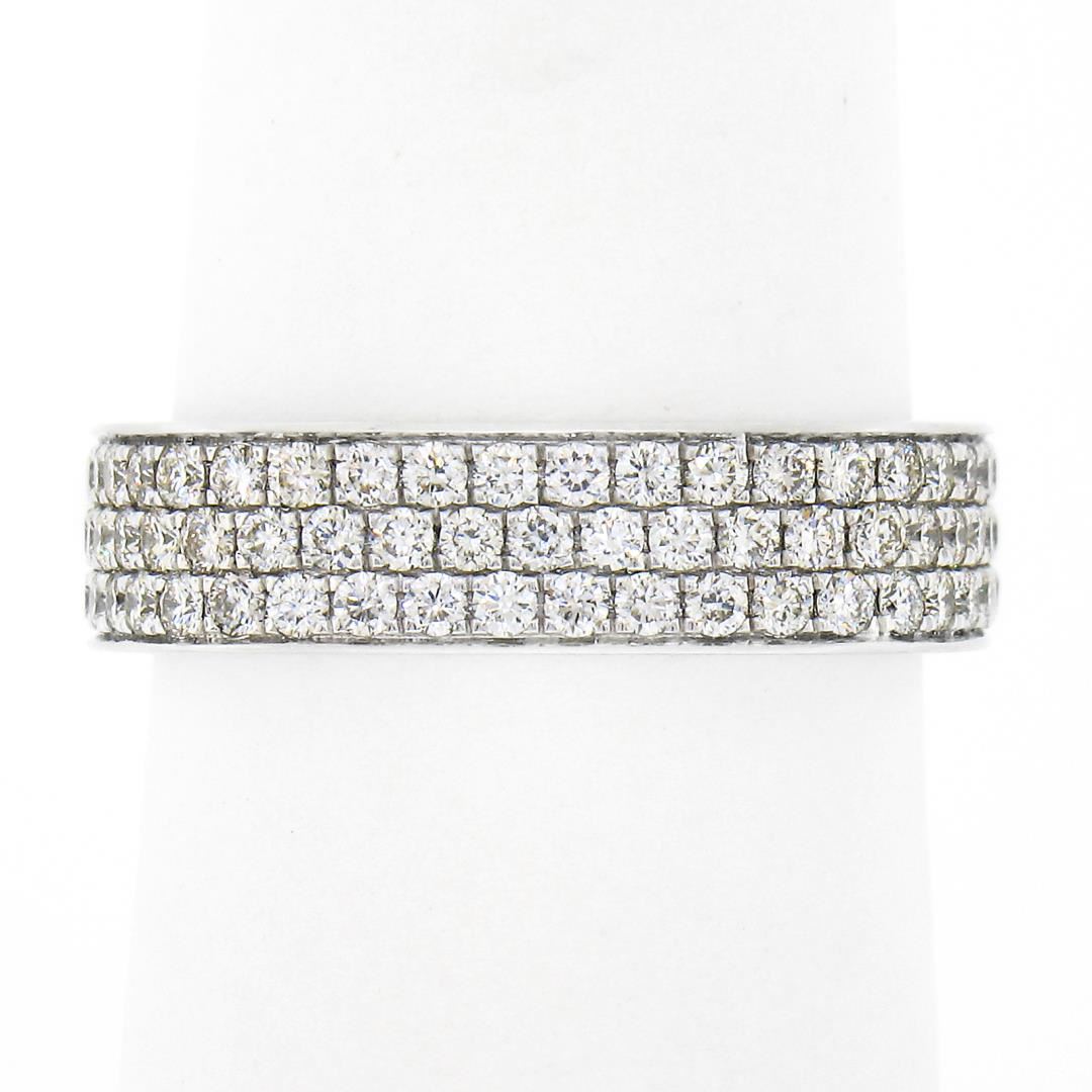 A solid 18k white gold eternity band ring, with 120 round brilliant cut natural diamonds (G/H - VS1/SI1 ; 1.20ctw). The ring is size 6.5, weighs a total of 4.50 grams, and measures 5.1mm wide.