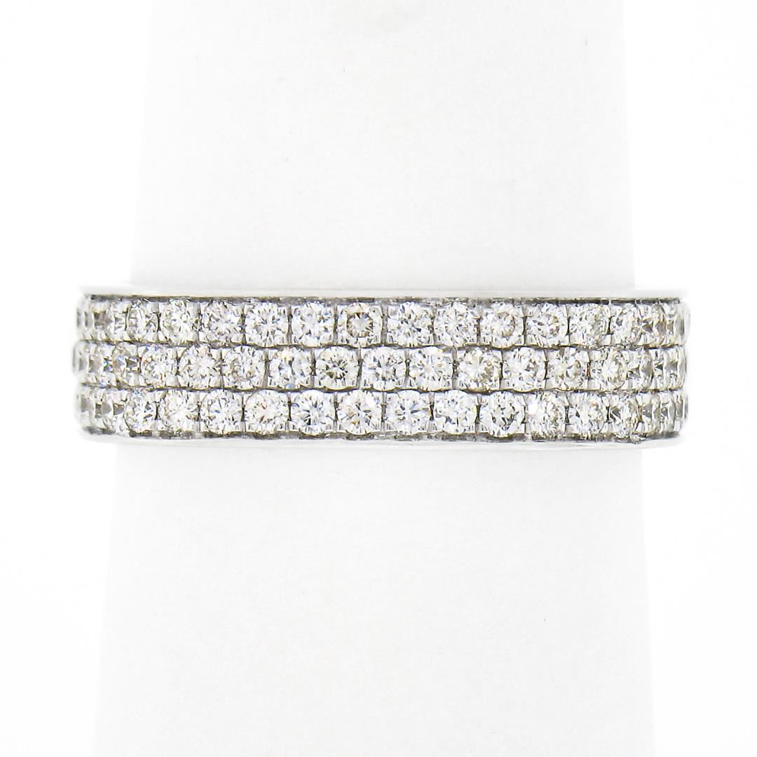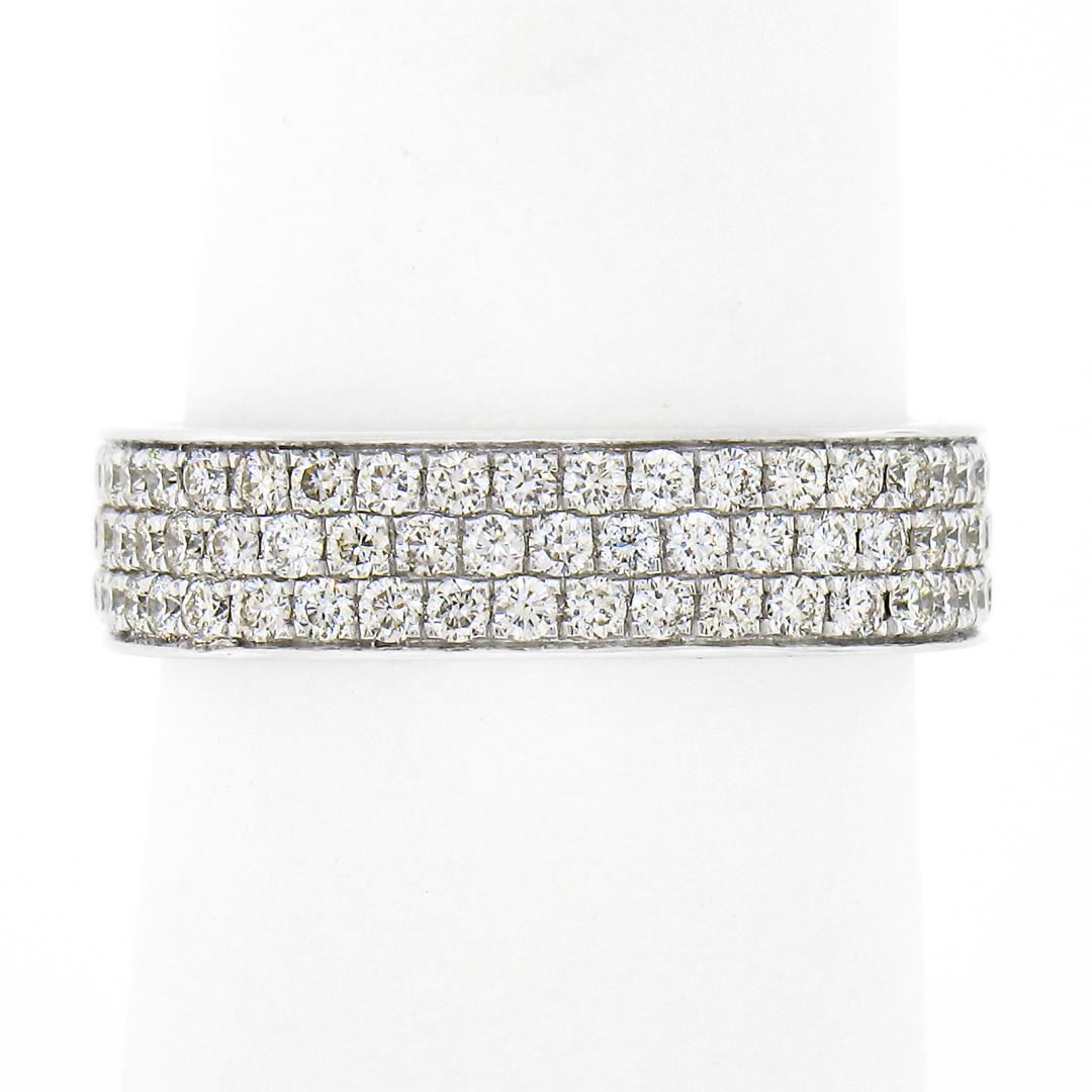 A solid 18k white gold eternity band ring, with 120 round brilliant cut natural diamonds (G/H - VS1/SI1 ; 1.20ctw). The ring is size 6.5, weighs a total of 4.50 grams, and measures 5.1mm wide.