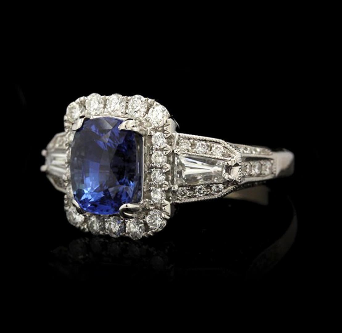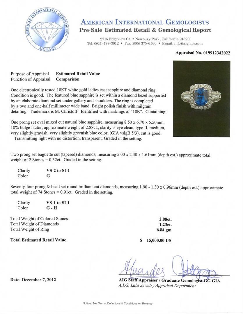 One 18k White Gold 2.88ct Sapphire 1.23ct Diamond Ring.
