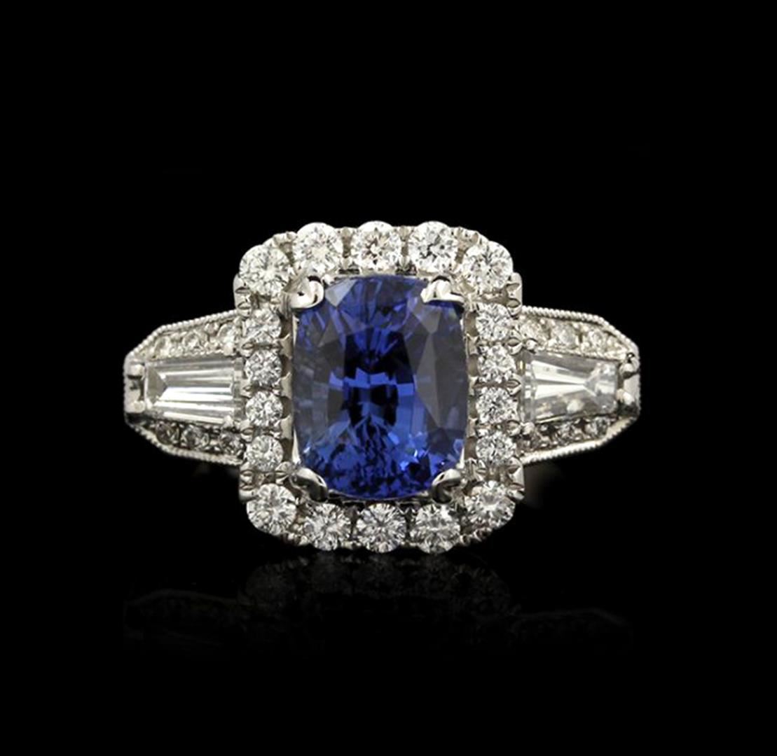 One 18k White Gold 2.88ct Sapphire 1.23ct Diamond Ring.