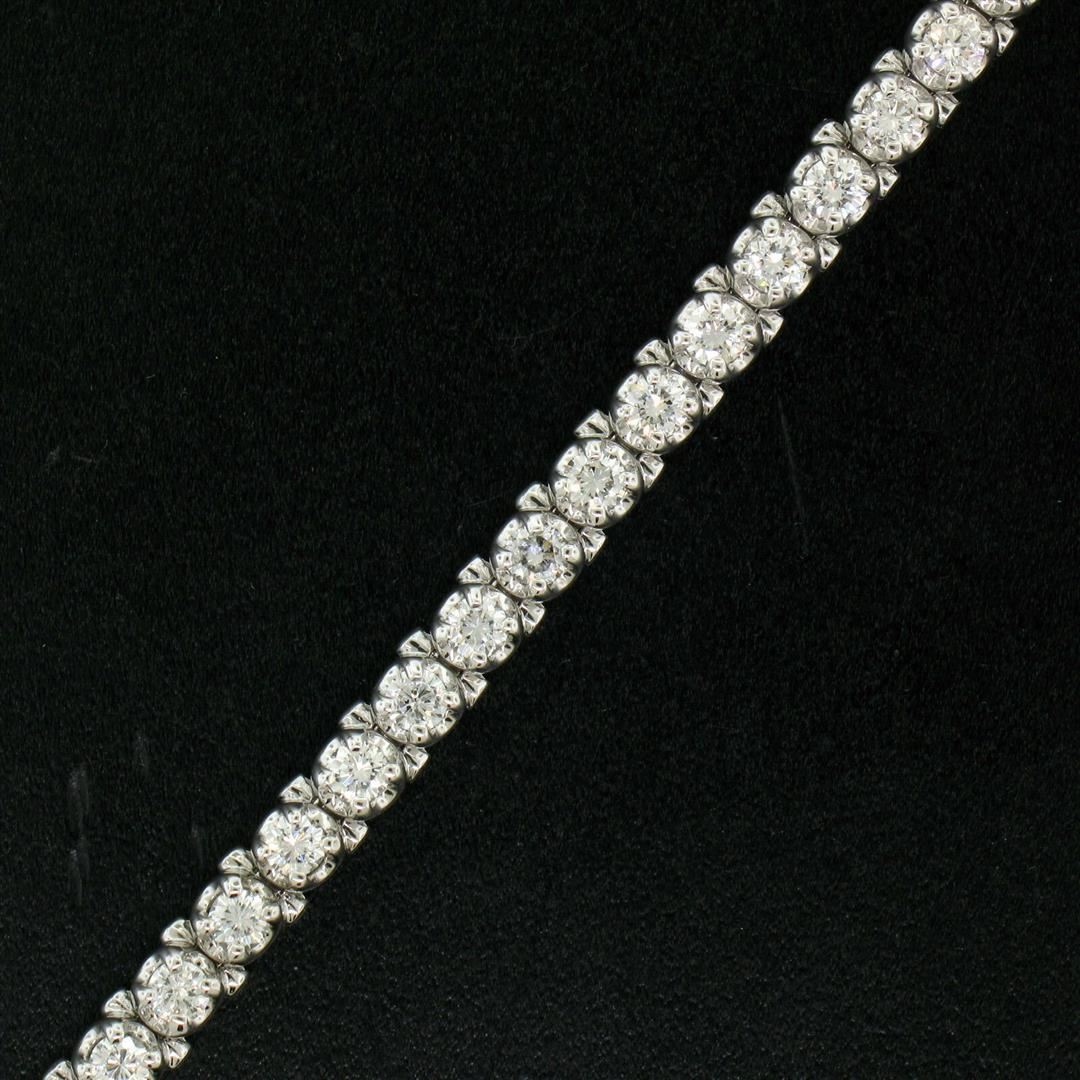 A brand new 18k white gold tennis bracelet with 3.48ctw of round diamonds (G/H - VS1/VS2). It weighs a total of 17.56 grams, measures 4.6mm wide, and measures 7 inches in length.