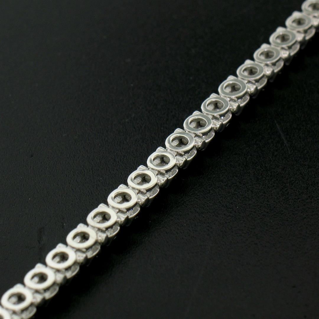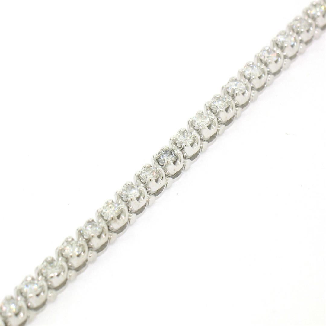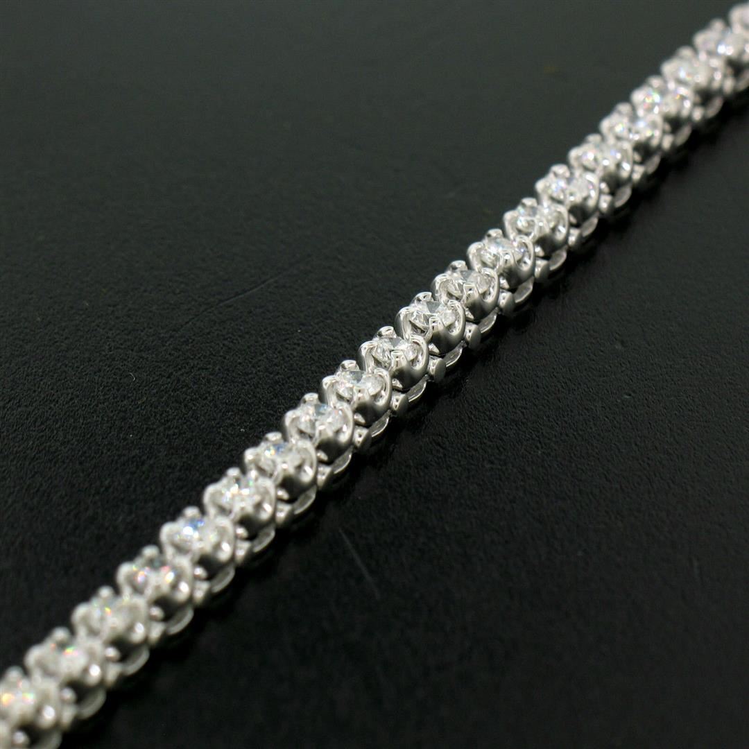 A brand new 18k white gold tennis bracelet with 3.48ctw of round diamonds (G/H - VS1/VS2). It weighs a total of 17.56 grams, measures 4.6mm wide, and measures 7 inches in length.