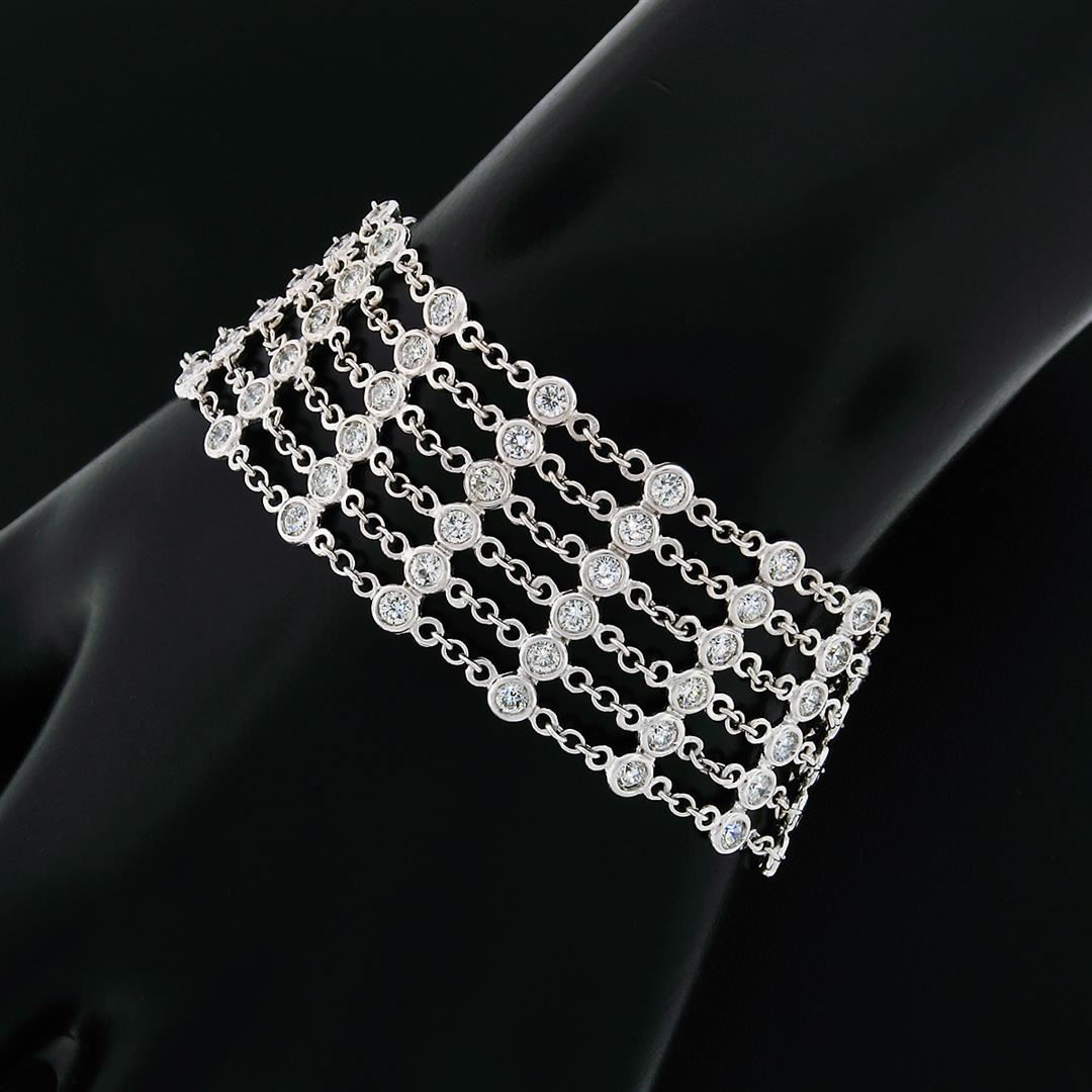 A solid 18k white gold, 6 row, "by the yard" bracelet with 21 round brilliant cut natural yellow sapphires (0.65ctw) and 90 round brilliant cut natural diamonds (F/G - VS1/VS2; 6.00ctw). It weighs a total of 9.44 grams, measures 27.62mm wide, and measures 6 3/4 inches in length.