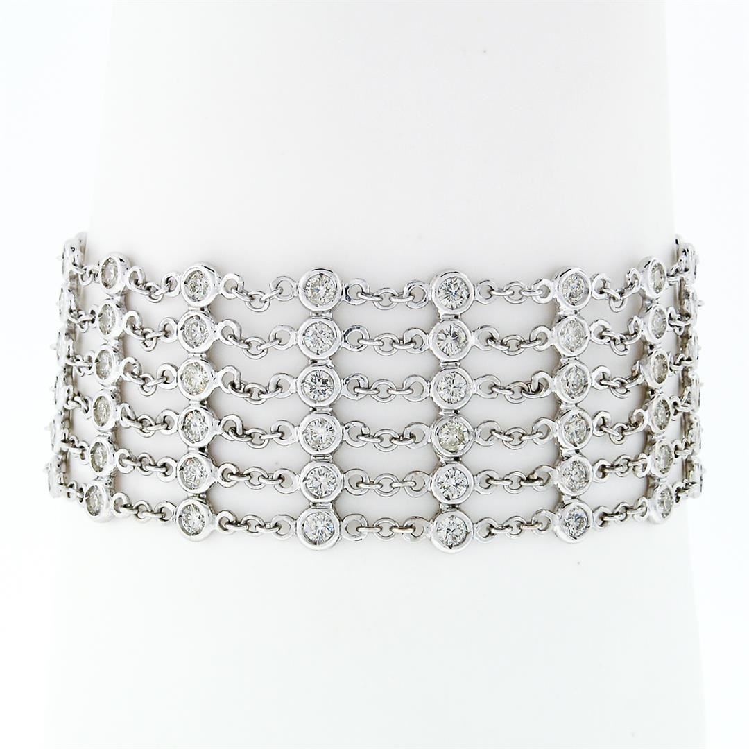 A solid 18k white gold, 6 row, "by the yard" bracelet with 21 round brilliant cut natural yellow sapphires (0.65ctw) and 90 round brilliant cut natural diamonds (F/G - VS1/VS2; 6.00ctw). It weighs a total of 9.44 grams, measures 27.62mm wide, and measures 6 3/4 inches in length.