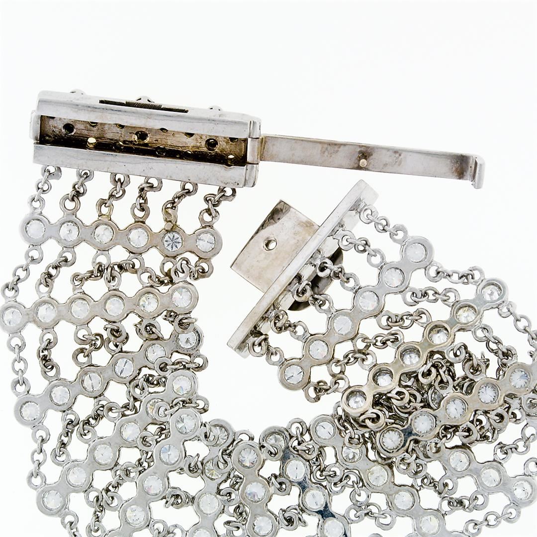 A solid 18k white gold, 6 row, "by the yard" bracelet with 21 round brilliant cut natural yellow sapphires (0.65ctw) and 90 round brilliant cut natural diamonds (F/G - VS1/VS2; 6.00ctw). It weighs a total of 9.44 grams, measures 27.62mm wide, and measures 6 3/4 inches in length.