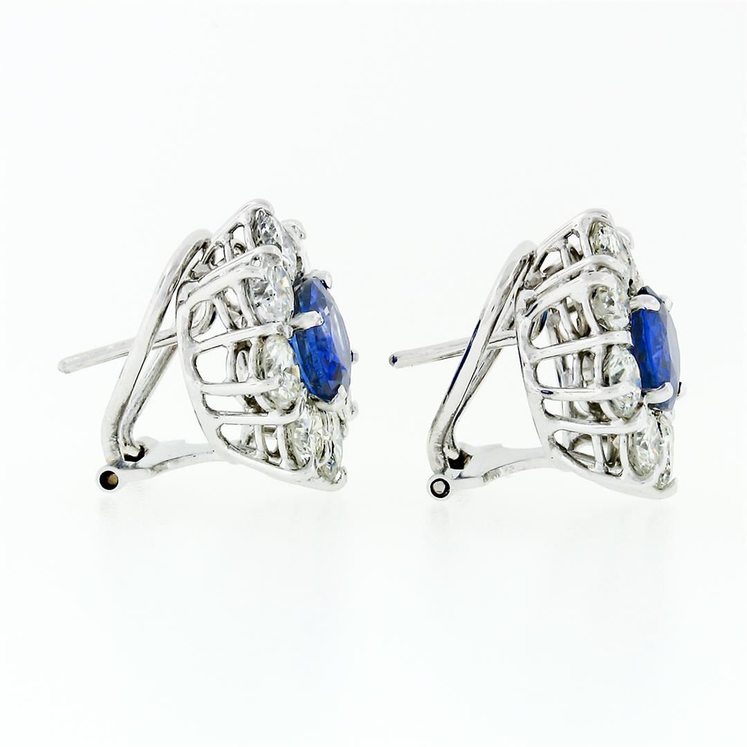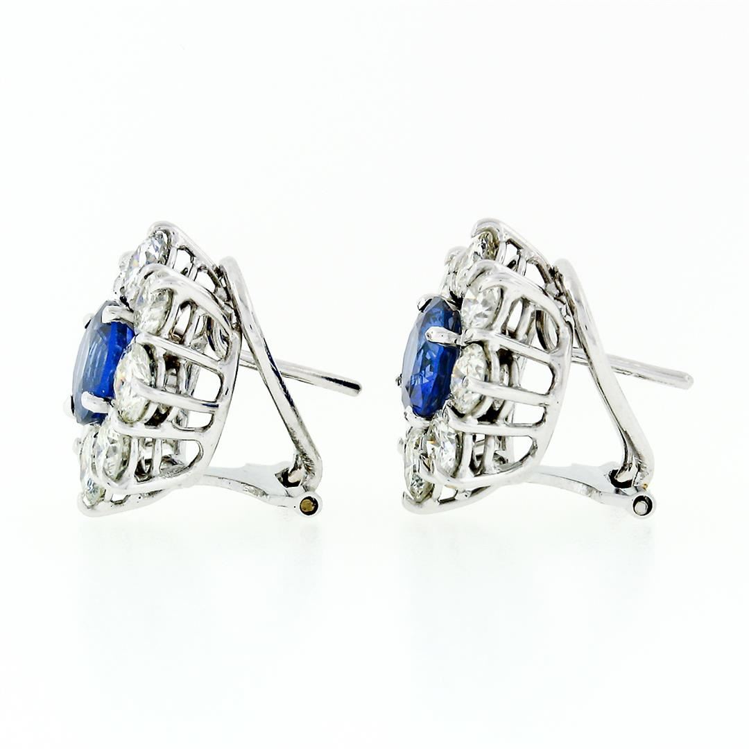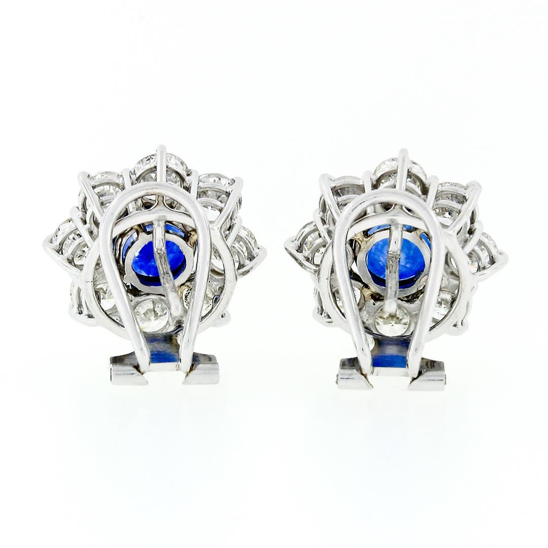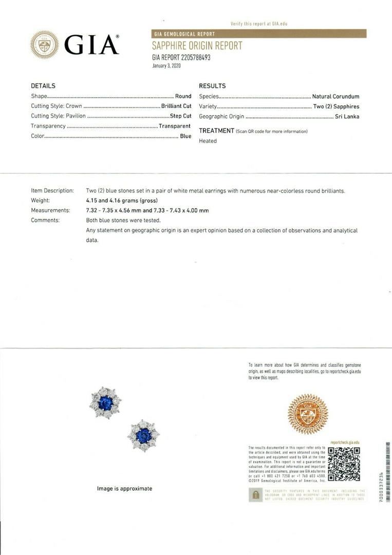 A pair of solid 18k white gold flower earrings with 2 GIA certified round brilliant cut natural sapphires (7.32 - 7.35 and 7.33 - 7.43; 3.70ctw), surrounded with 16 round brilliant cut natural diamonds (G/H - VS2/SI1; 4.80ctw). The earrings measure approximately 17.5mm in dimension and weigh a total of 8.31 grams. Comes with all original relevant certifications.