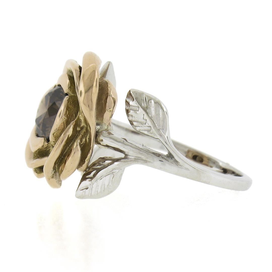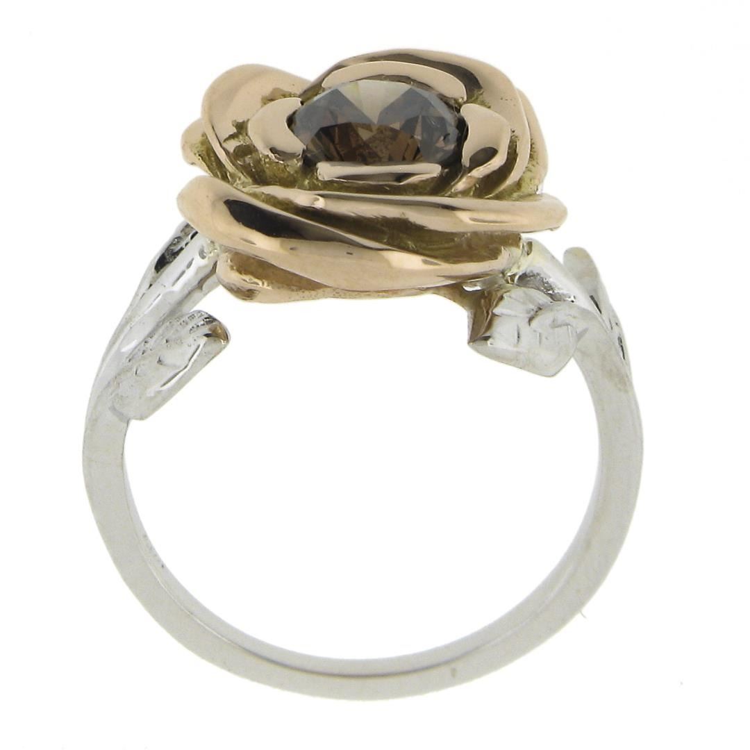 18k White & Rose Gold GIA 1.04ct Round Fancy Orange Brown Diamond Flower Ring