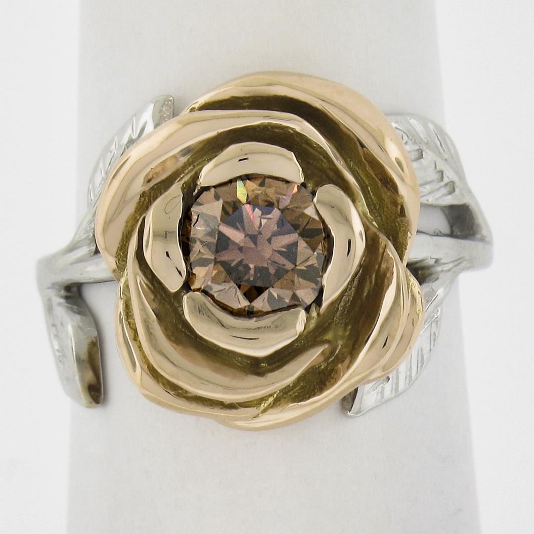18k White & Rose Gold GIA 1.04ct Round Fancy Orange Brown Diamond Flower Ring