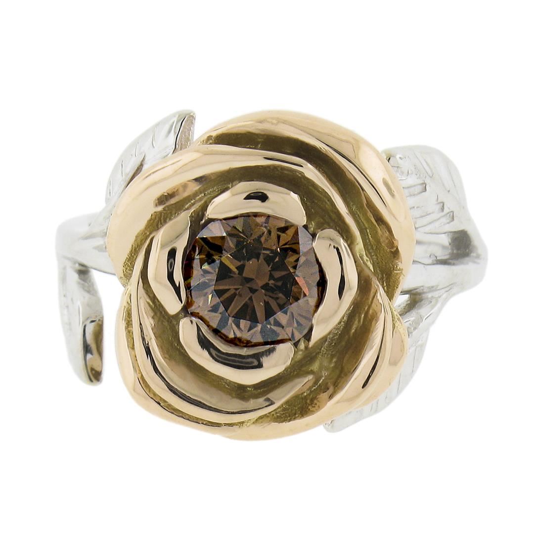 18k White & Rose Gold GIA 1.04ct Round Fancy Orange Brown Diamond Flower Ring