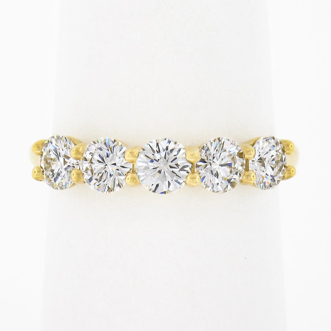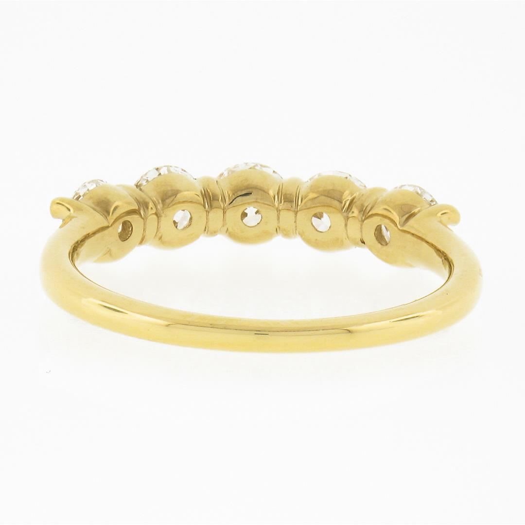 A new solid 14k yellow gold band ring, with 5 round ideal cut natural diamonds (F/G Color - VS1/VS2 ; 1.22ctw). The ring is size 6.5, weighs a total of 2.94 grams, and measures 4.1mm wide.