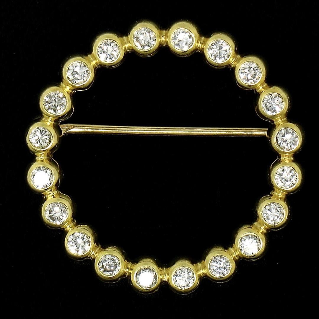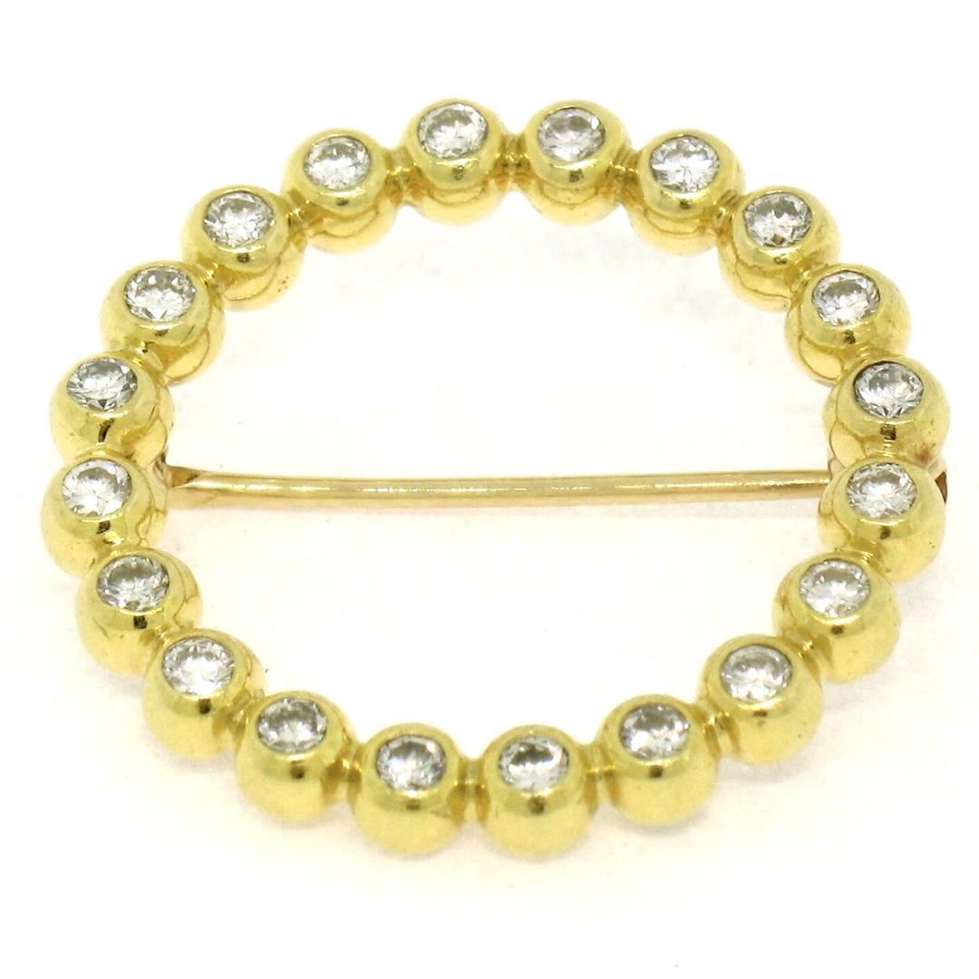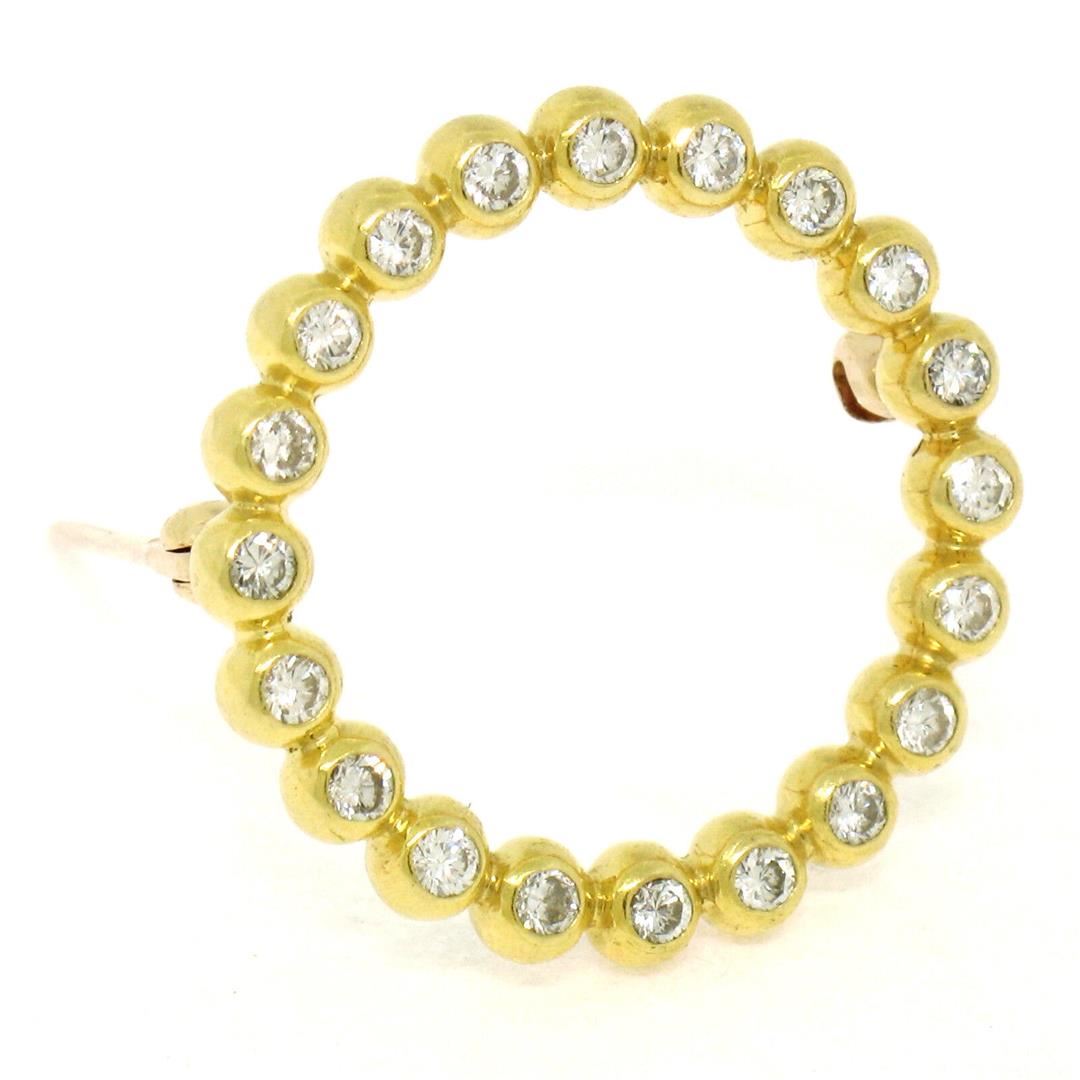 An estate solid 18k yellow gold wreath circle of life pin brooch, with 20 round brilliant cut natural diamonds (F/G - VS; 0.60ctw). Measures 23.0mm in dimension and weighs a total of 4.25 grams.