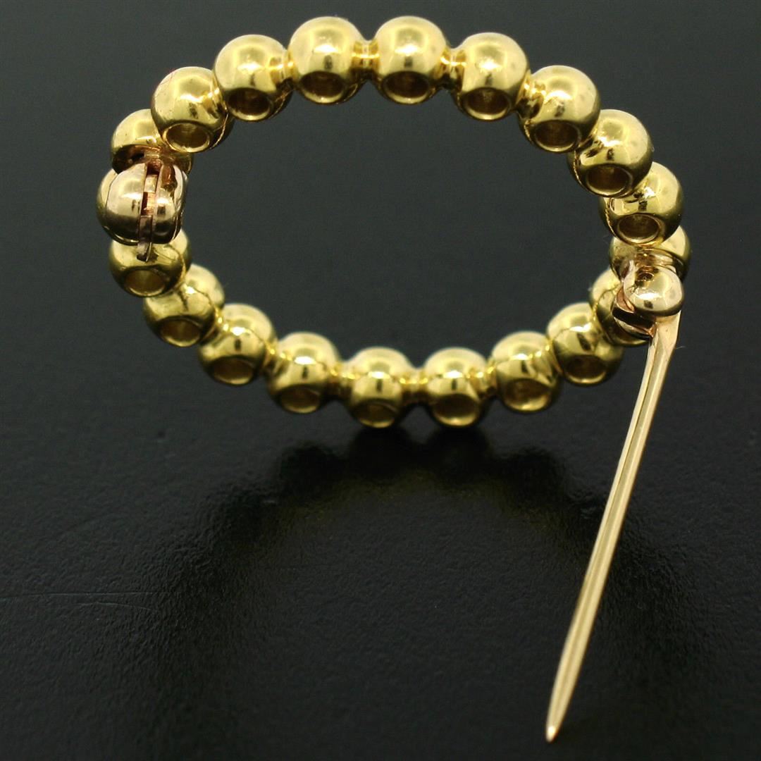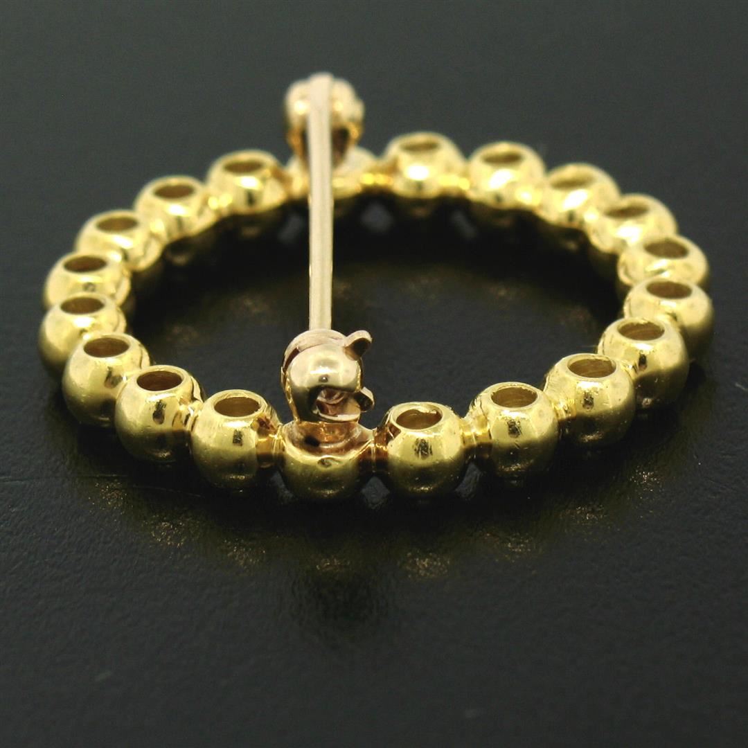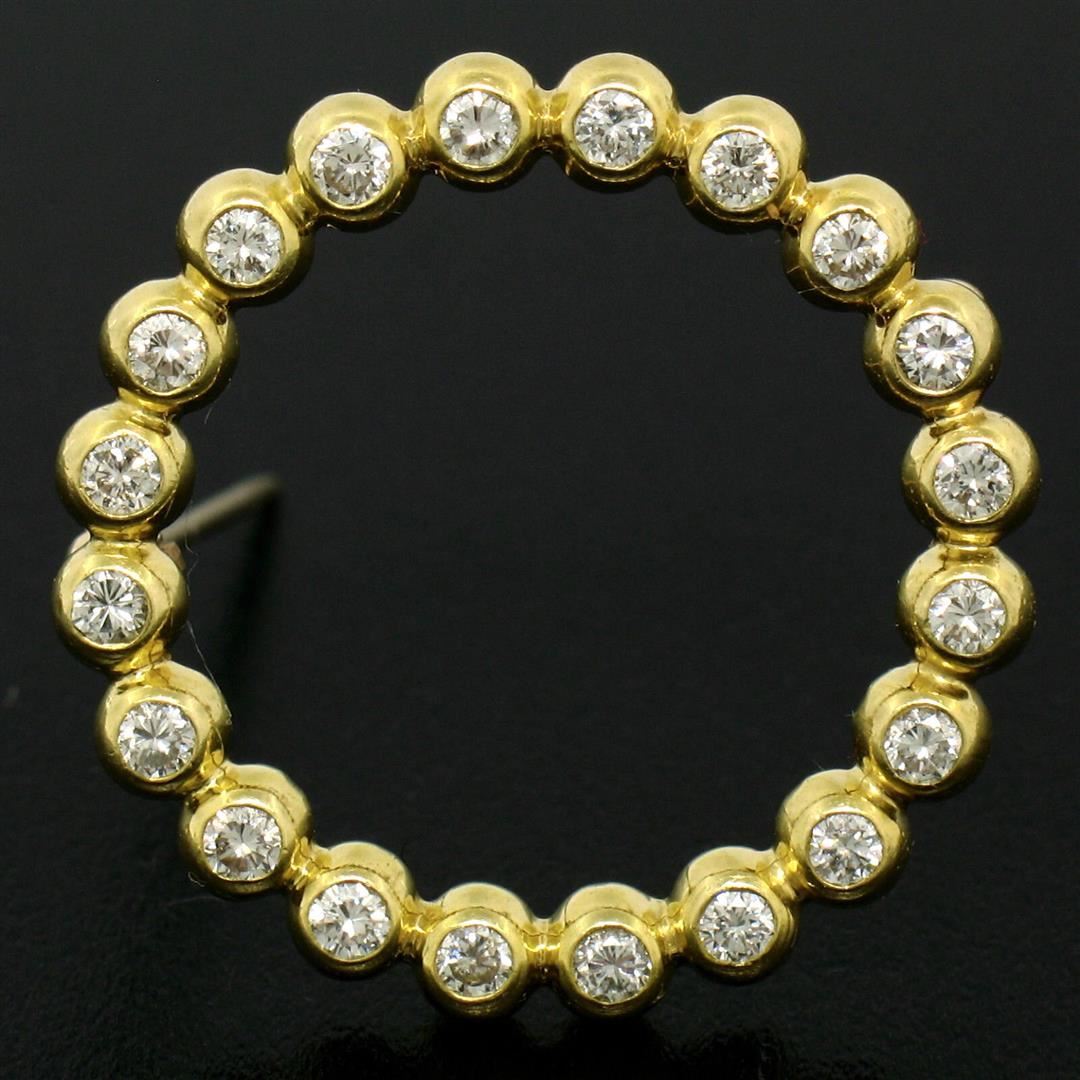 An estate solid 18k yellow gold wreath circle of life pin brooch, with 20 round brilliant cut natural diamonds (F/G - VS; 0.60ctw). Measures 23.0mm in dimension and weighs a total of 4.25 grams.