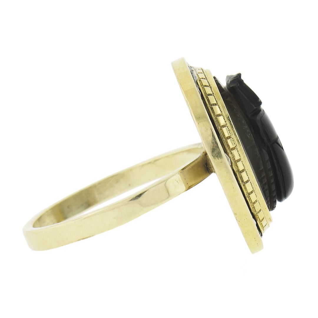 18k Yellow Gold Bezel Set Carved Hard Stone Scarab w/ Rose Cut Diamonds Ring