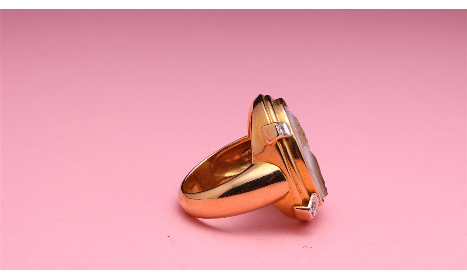 18k Yellow Gold Cameo Agate & Diamond Ring