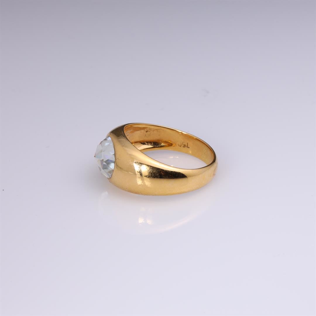 18k Yellow Gold & Custom Cut Moissanite Ring by Carlo Rici containing one custom moissanite. Total weight of ring is 8 gm. Estimated retail value $2,900.