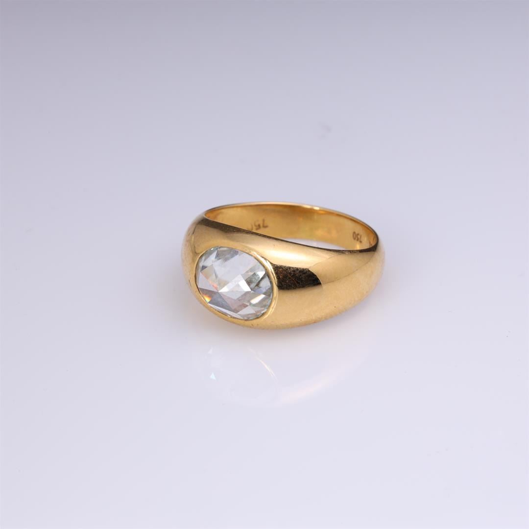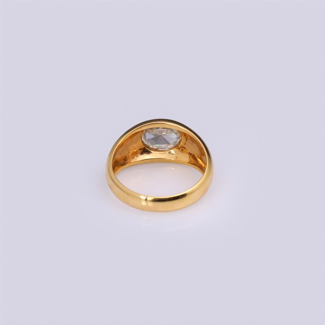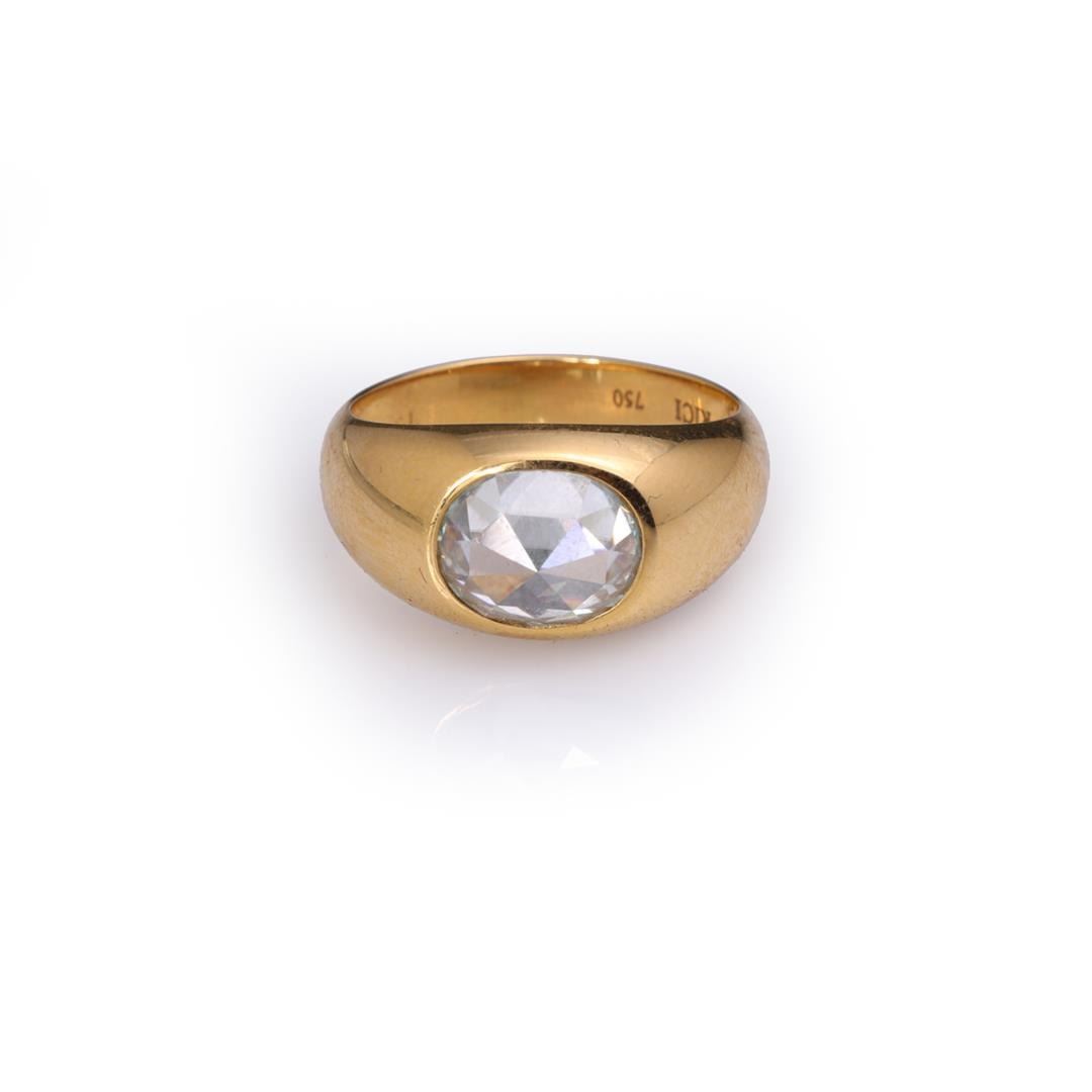 18k Yellow Gold & Custom Cut Moissanite Ring by Carlo Rici containing one custom moissanite. Total weight of ring is 8 gm. Estimated retail value $2,900.