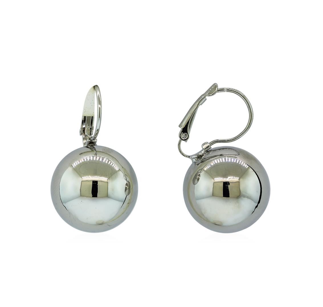 High end designer jewelry. 18mm Glossy Bead Drop Earrings - Silver Plated. Silver Plated French Clip Set. Silver. 1inch.