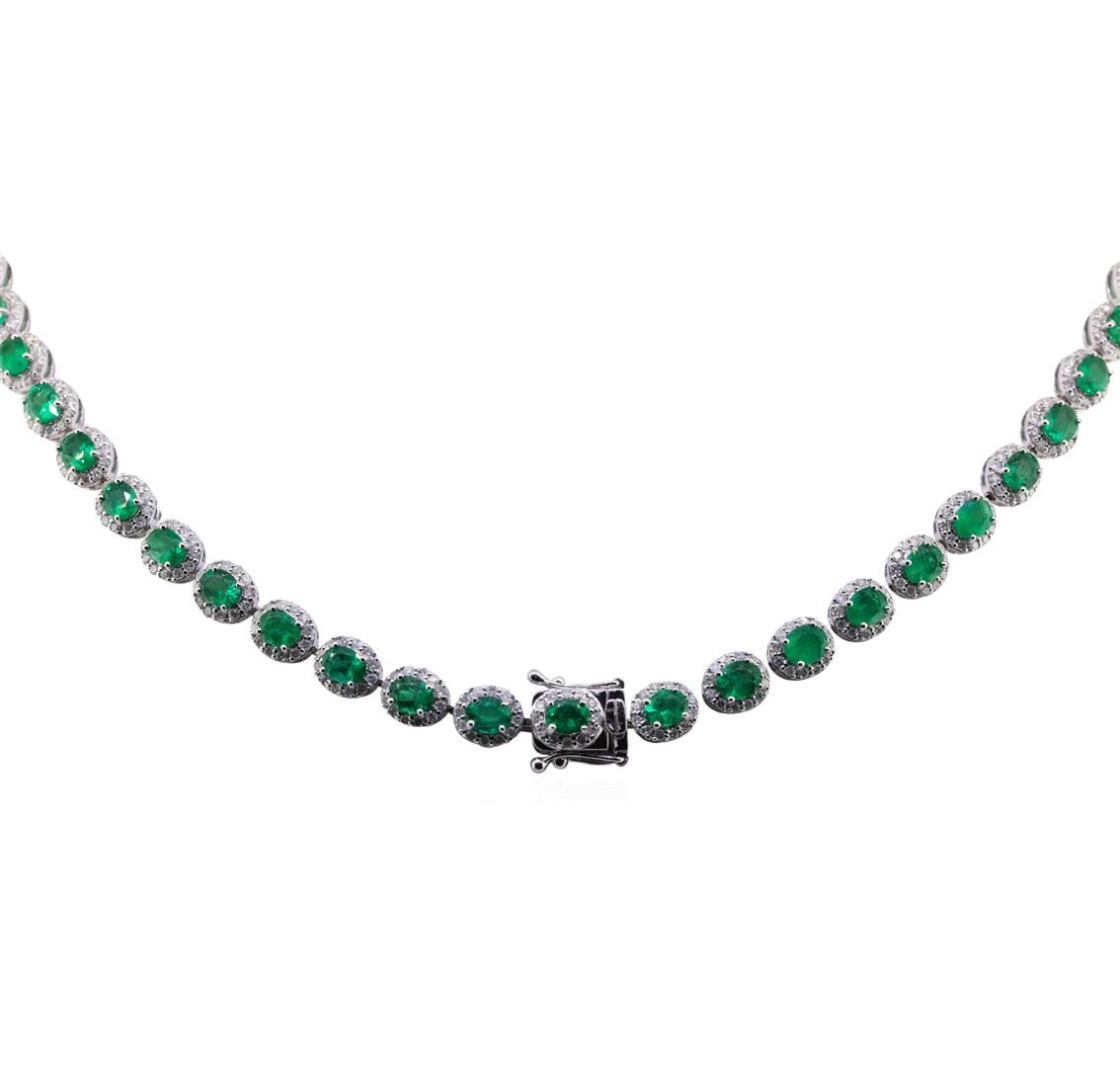 One 19.87ctw Emerald and Diamond Necklace - 18KT White Gold. AIG certified. See Appraisal for more details. AIG Appraised.