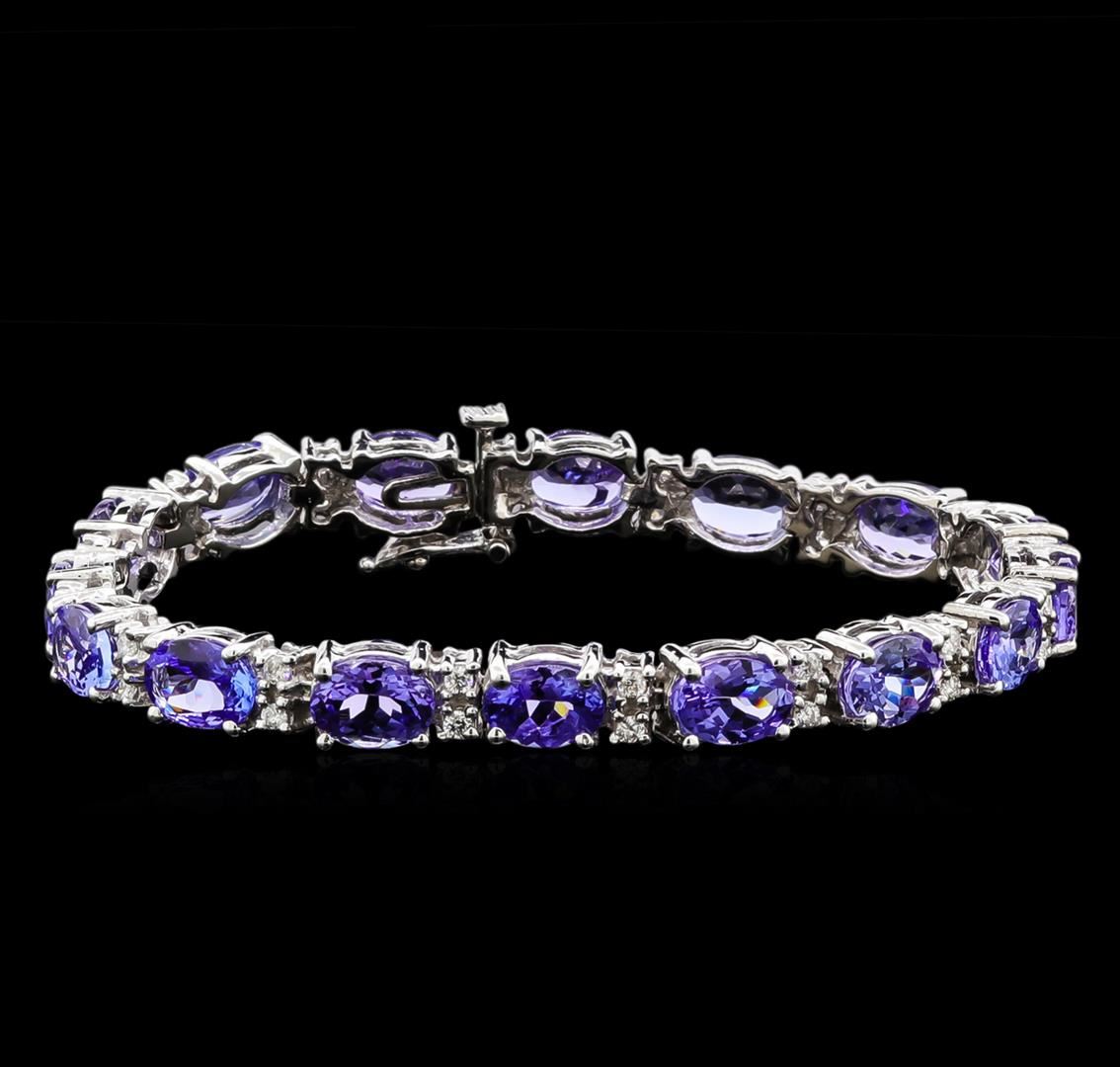 One electronically tested 14KT white gold lady's combination cast & assembled fashion bracelet with a tongue clasp with foldover safety with a bright polish finish. The featured lady's bracelet measures 7 inches in length. Identified with markings of "14K". Condition is new, good workmanship. Containing: Sixteen prong set oval modified brilliant cut natural tanzanites, measuring 8.00 x 5.80 x 3.80mm, approximate total weight of 19.90ct., clarity is eye clean, type I, medium, very slightly grayish, bluish violet color, (GIA bV 5/3), cut is good. Transmitting light with no distortion, transparent. Colored gemstones are presumed to have been subjected to commonly used enhancement processes. Graded in the setting. Thirty-Two prong set round brilliant cut diamonds, measuring 1.90 - 1.80 x 1.17mm (depth est.) approximate total weight of 32 Stones = 0.78ct. Graded in the setting. Clarity: SI-1 to SI-2. Color: H - I. Cut Very Good. Total Weight of Colored Stones 19.90ct. Total Weight of Diamonds 0.78ct. Total Weight of Bracelet 20.60gm. GAS Appraised at $22,530.00.