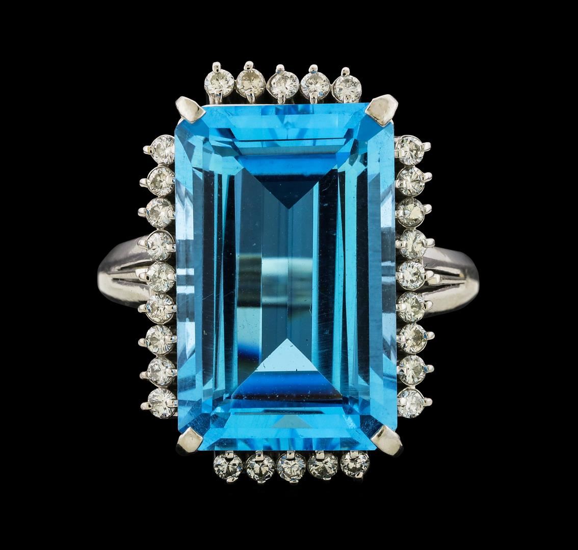 One ring featuring: Platinum containing Blue Topaz with a total weight of 19.91ct and Diamonds with a total weight of 0.54ct. Total Weight of Ring: 16.8 grams.