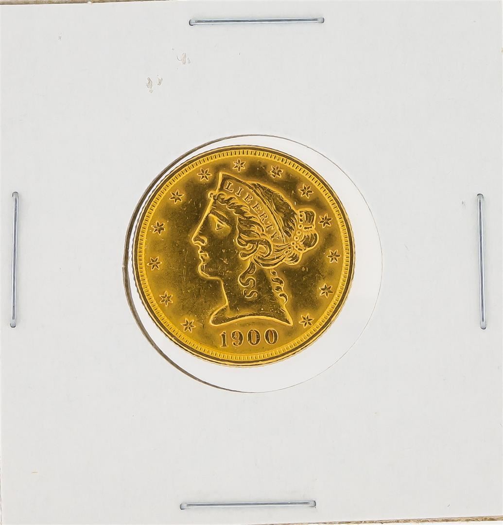 One 1900 $5 Liberty Head Half Eagle Gold Coin.