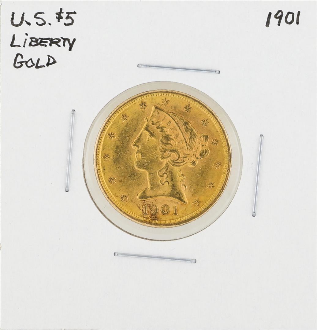 One 1901 $5 Liberty Head Half Eagle Gold Coin.