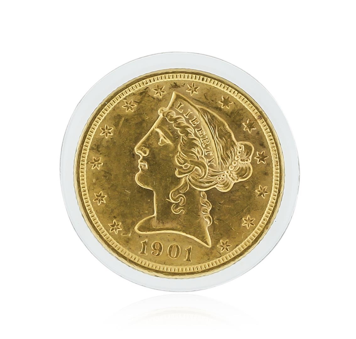 One 1901-S $5 CU Liberty Head Half Eagle Gold Coin.