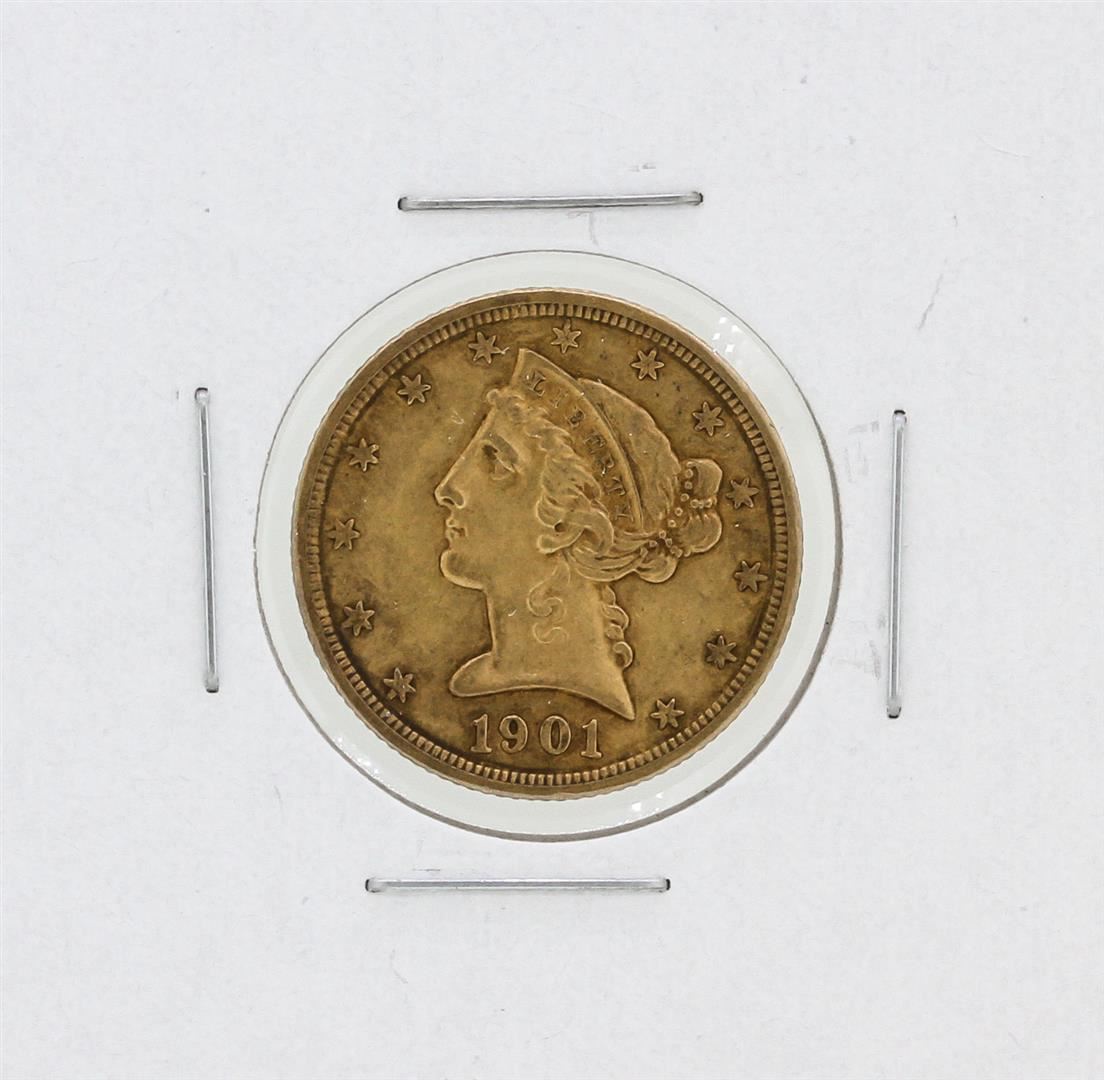 One 1901-S $5 XF Liberty Head Half Eagle Gold Coin.