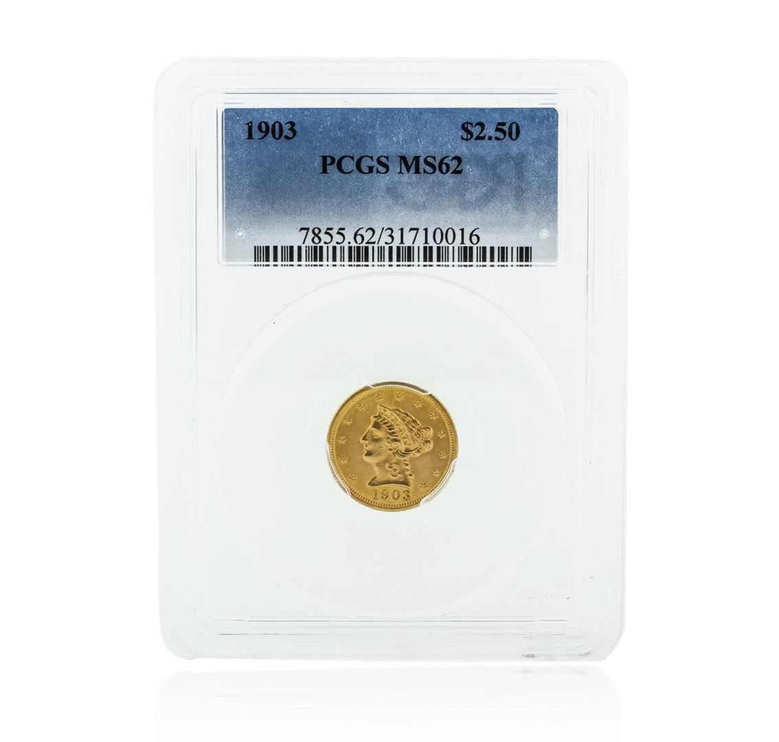 One 1903 PCGS MS62 $2.50 Liberty Head Quarter Eagle Coin. PCGS Certified.