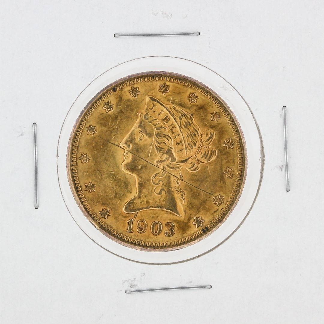 One 1903-S $10 AU Liberty Head Eagle Coin.