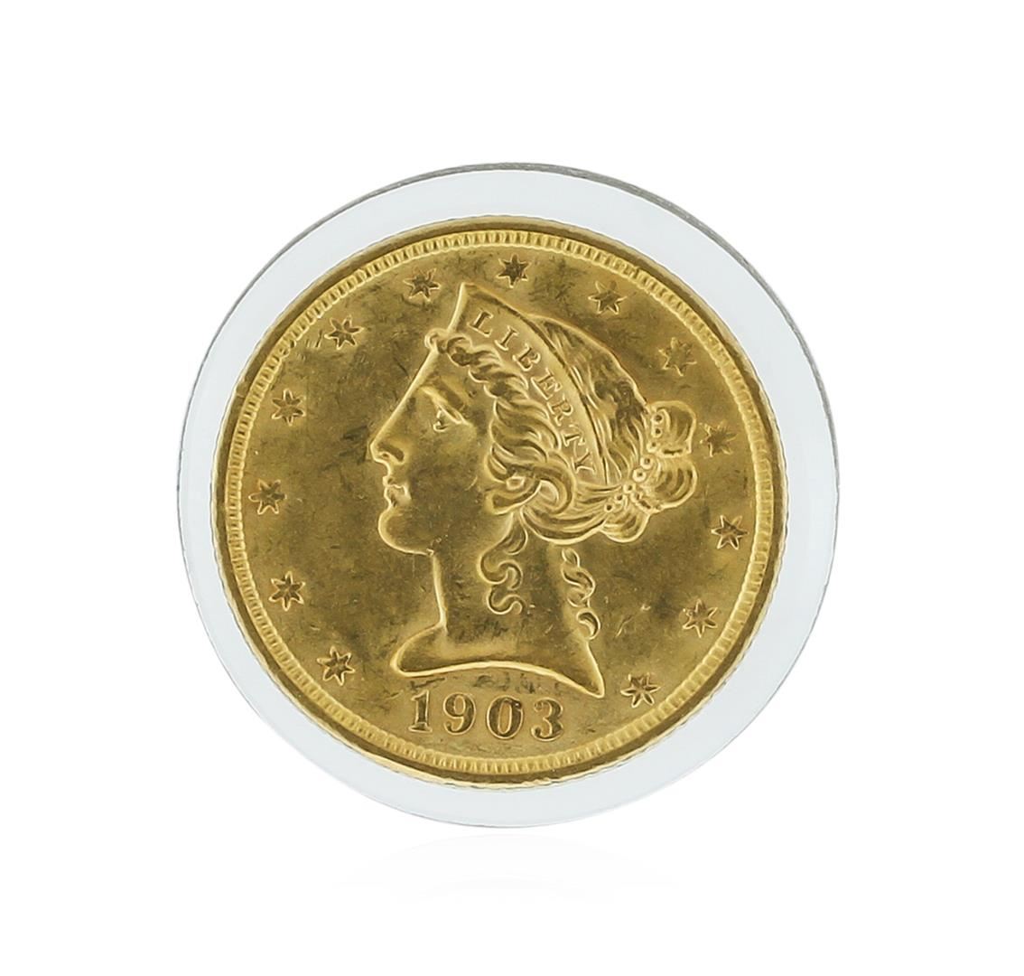 One 1903-S $5 BU Liberty Head Half Eagle Gold Coin.
