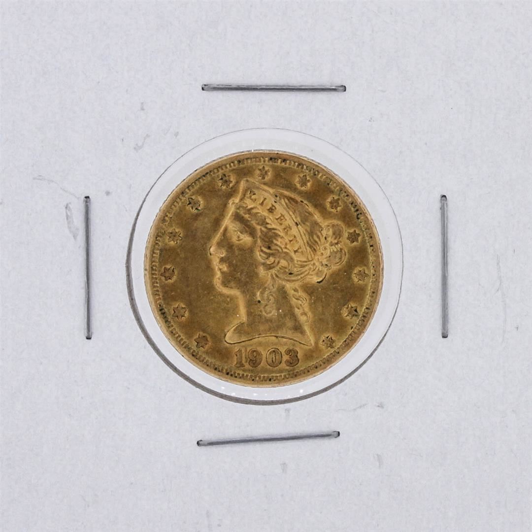 One 1903-S $5 CU Liberty Head Half Eagle Coin.