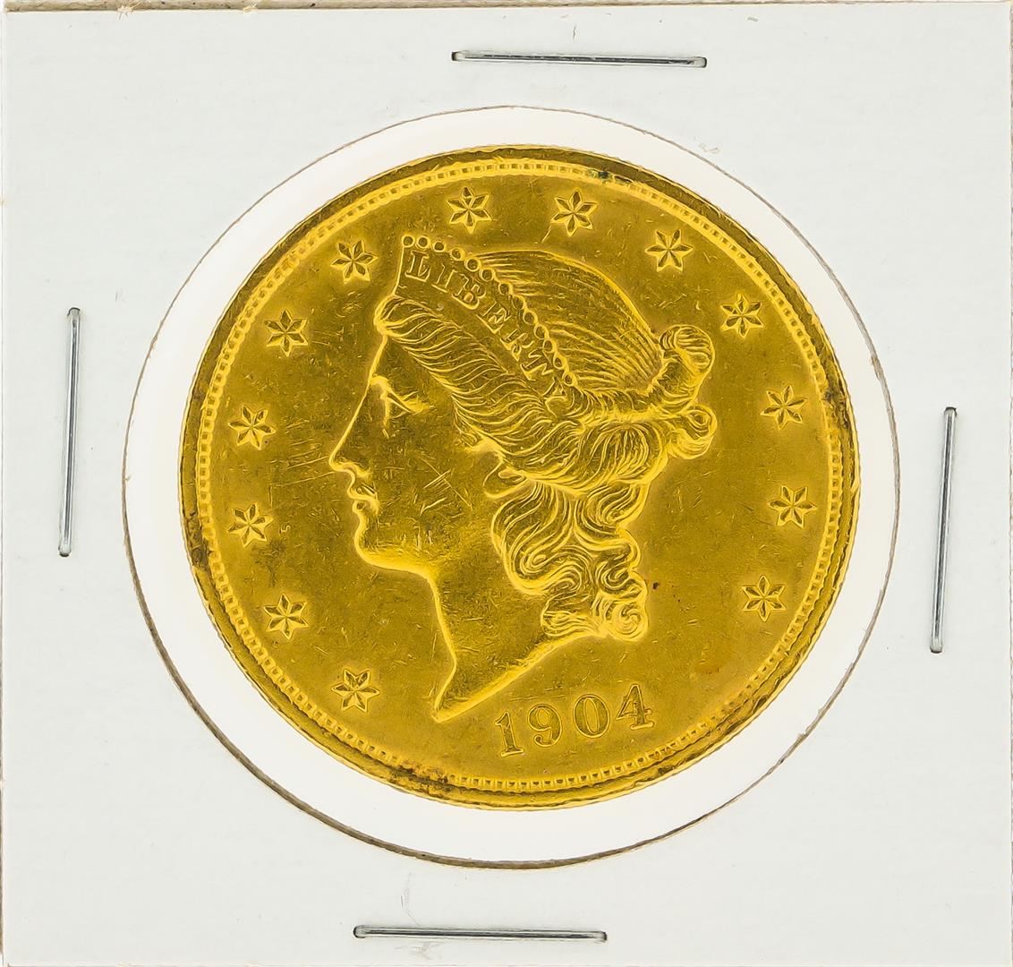 One 1904 $20 AU Liberty Head Double Eagle Gold Coin.
