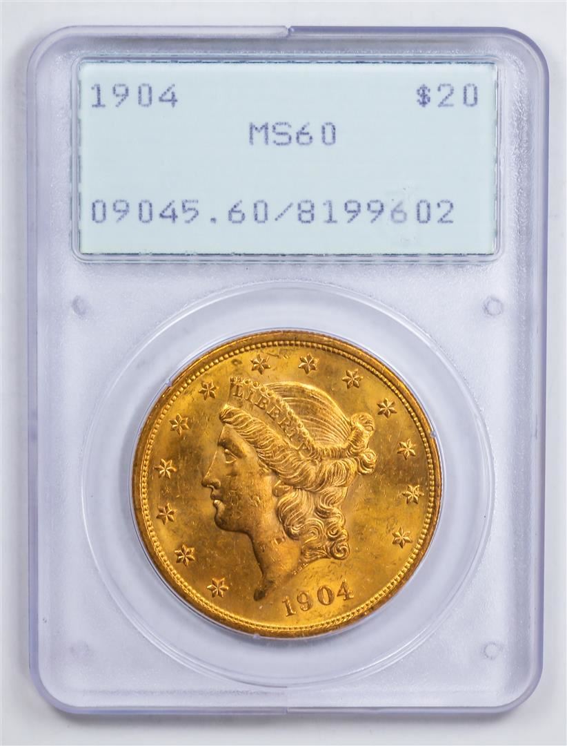 One 1904 $20 Double Eagle Gold Coin PCGS MS60.
