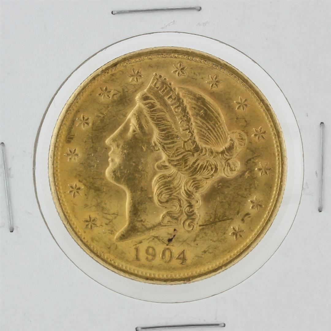 One 1904 $20 Liberty Head Double Eagle Coin.