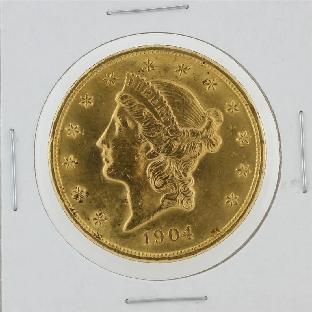 One 1904 $20 Liberty Head Double Eagle Gold Coin.
