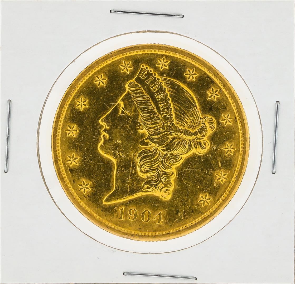 One 1904 $20 Liberty Head Double Eagle Gold Coin.