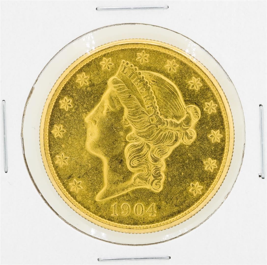 One 1904 $20 Liberty Head Double Eagle Gold Coin.