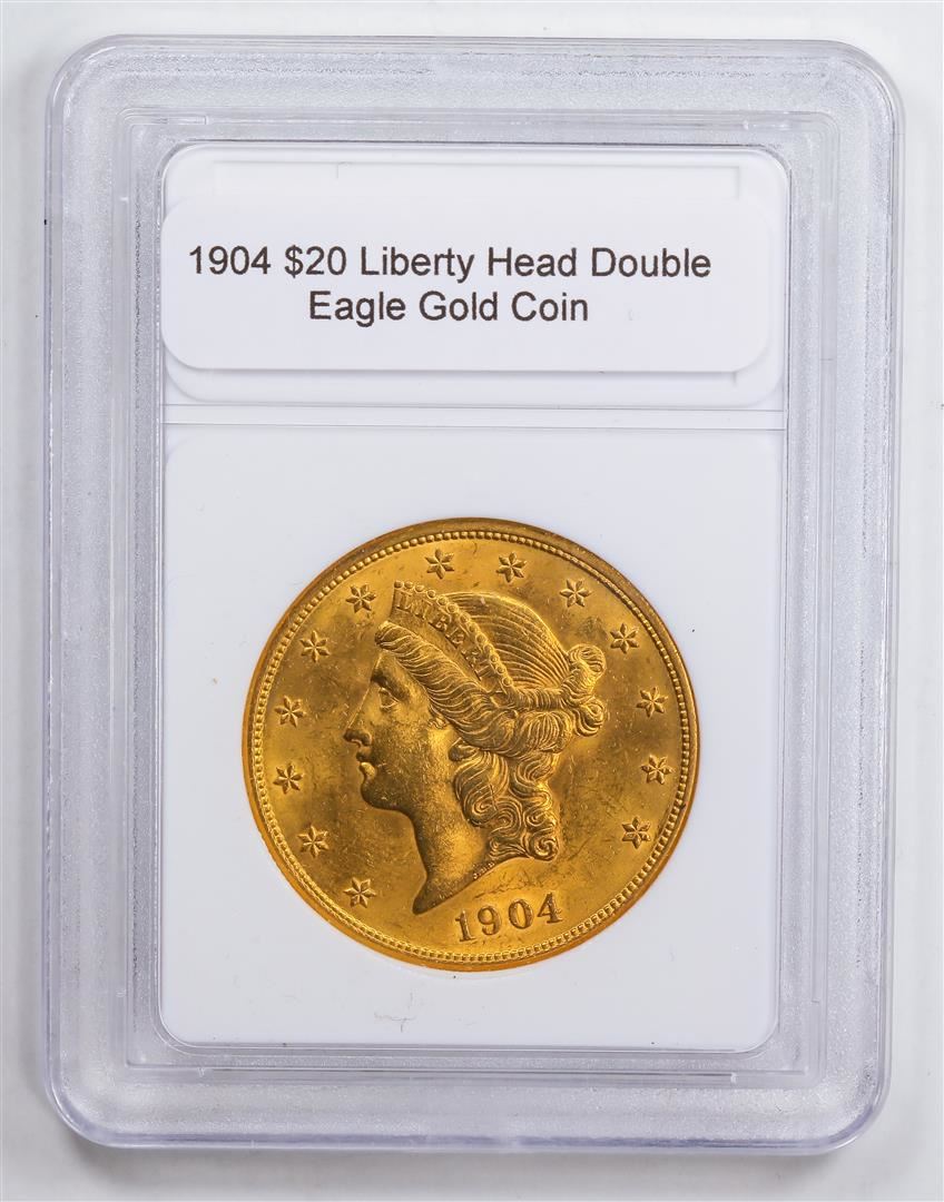 One 1904 $20 Liberty Head Double Eagle Gold Coin.