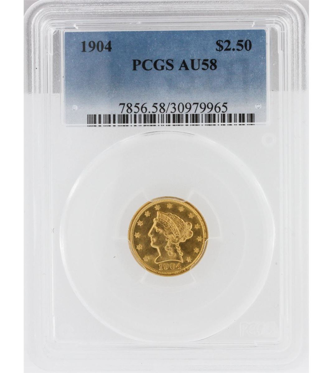 One 1904 PCGS AU58 $2.50 Liberty Head Quarter Eagle Coin. PCGS Certified.