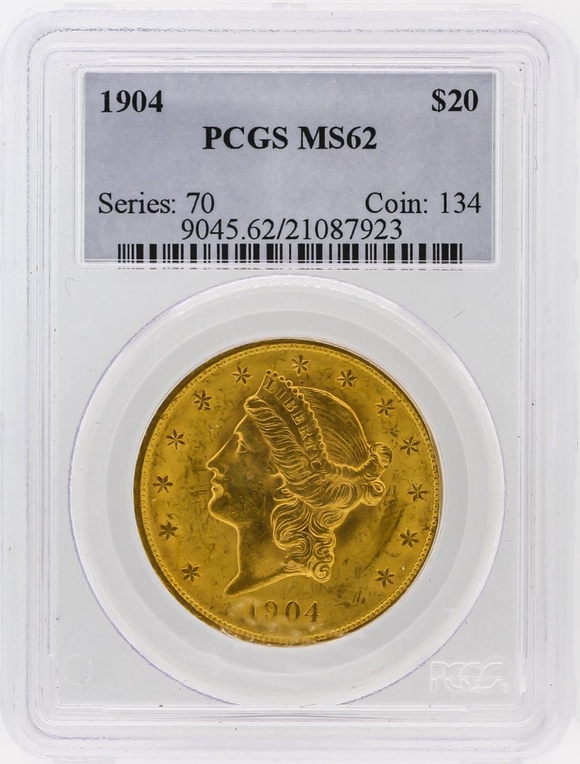 One 1904 PCGS MS62 $20 Liberty Head Double Eagle Gold Coin. PCGS Certified.