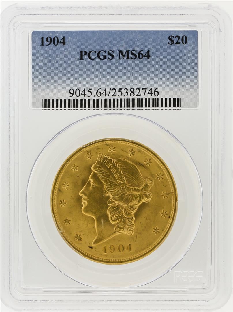 One 1904 PCGS MS64 $20 Liberty Head Double Eagle Gold Coin. PCGS Certified.
