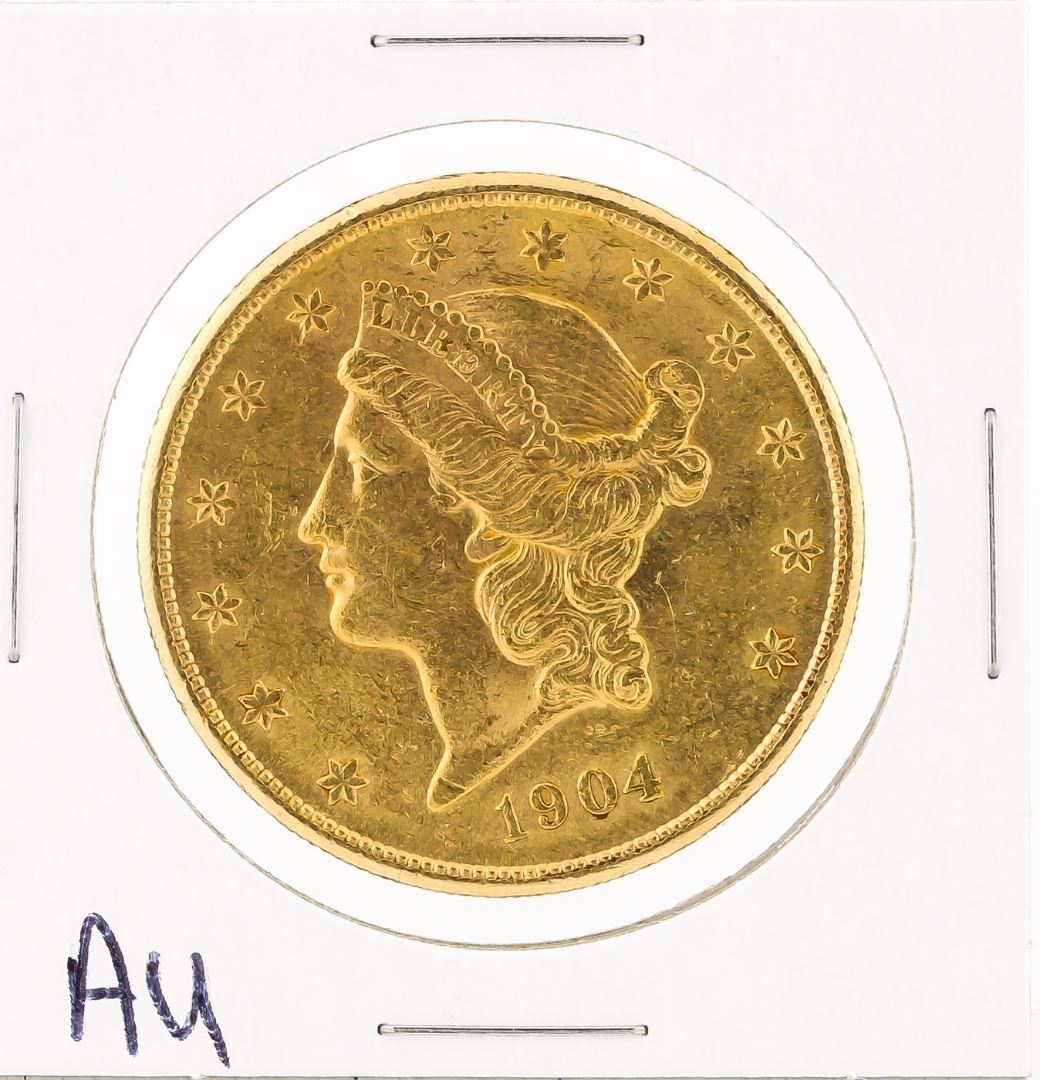 One 1904-S $20 Au Liberty Head Double Eagle Coin.