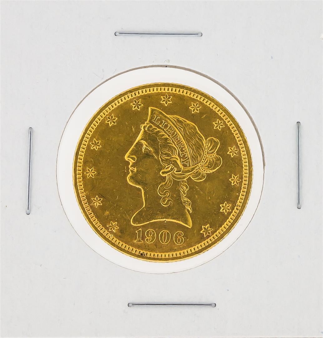 One 1906 $10 AU Liberty Head Eagle Gold Coin.