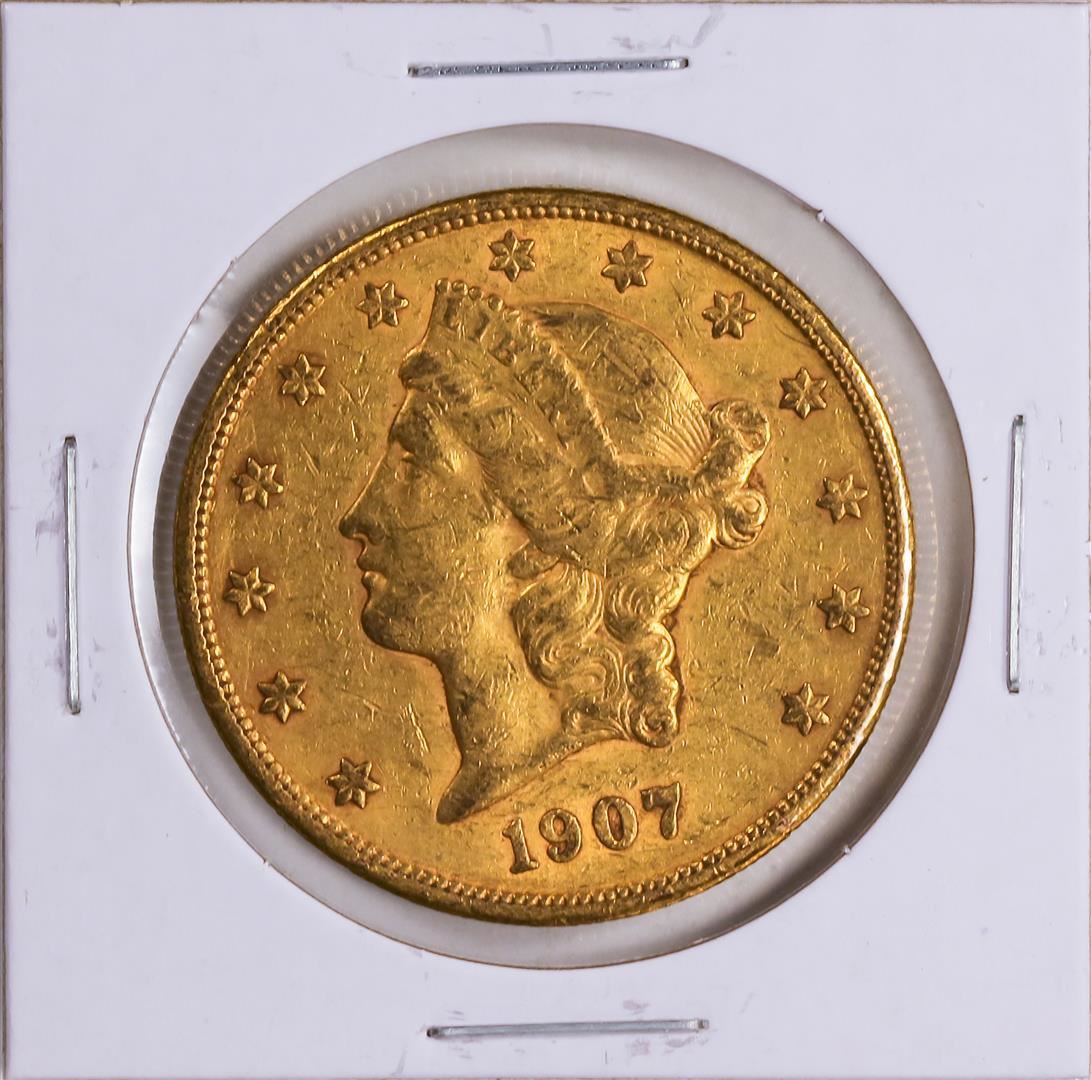 One 1907 $20 Liberty Head Double Eagle Gold Coin VF.